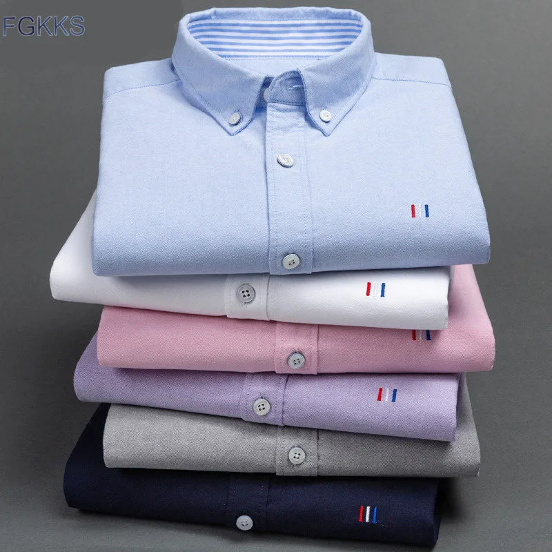 Мужская хлопковая рубашка FGKKS, Однотонная рубашка с длинными рукавами и квадратным воротником, для осени
