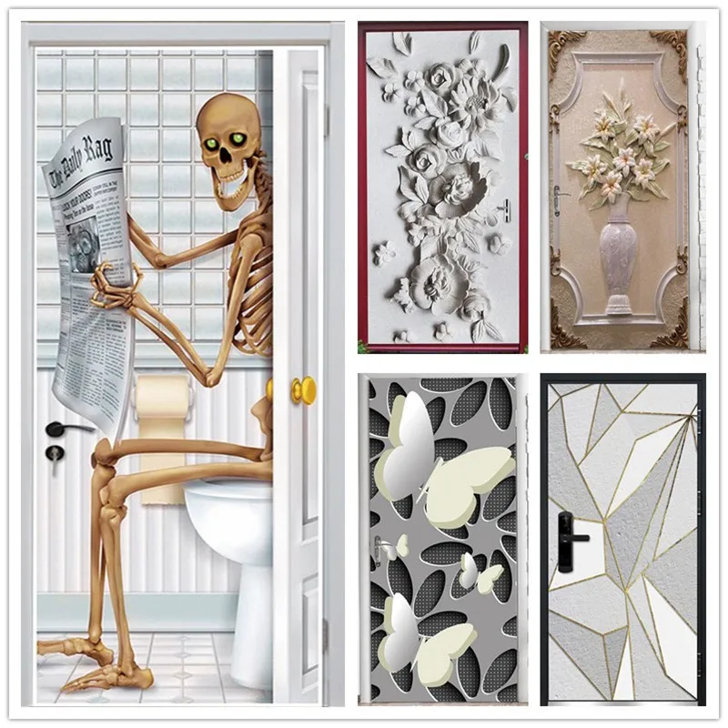 Креативные наклейки на двери в виде скелета, самоклеящиеся обои из ПВХ с цветочным узором, фрески для домашнего декора, художественные плакаты на холодильник