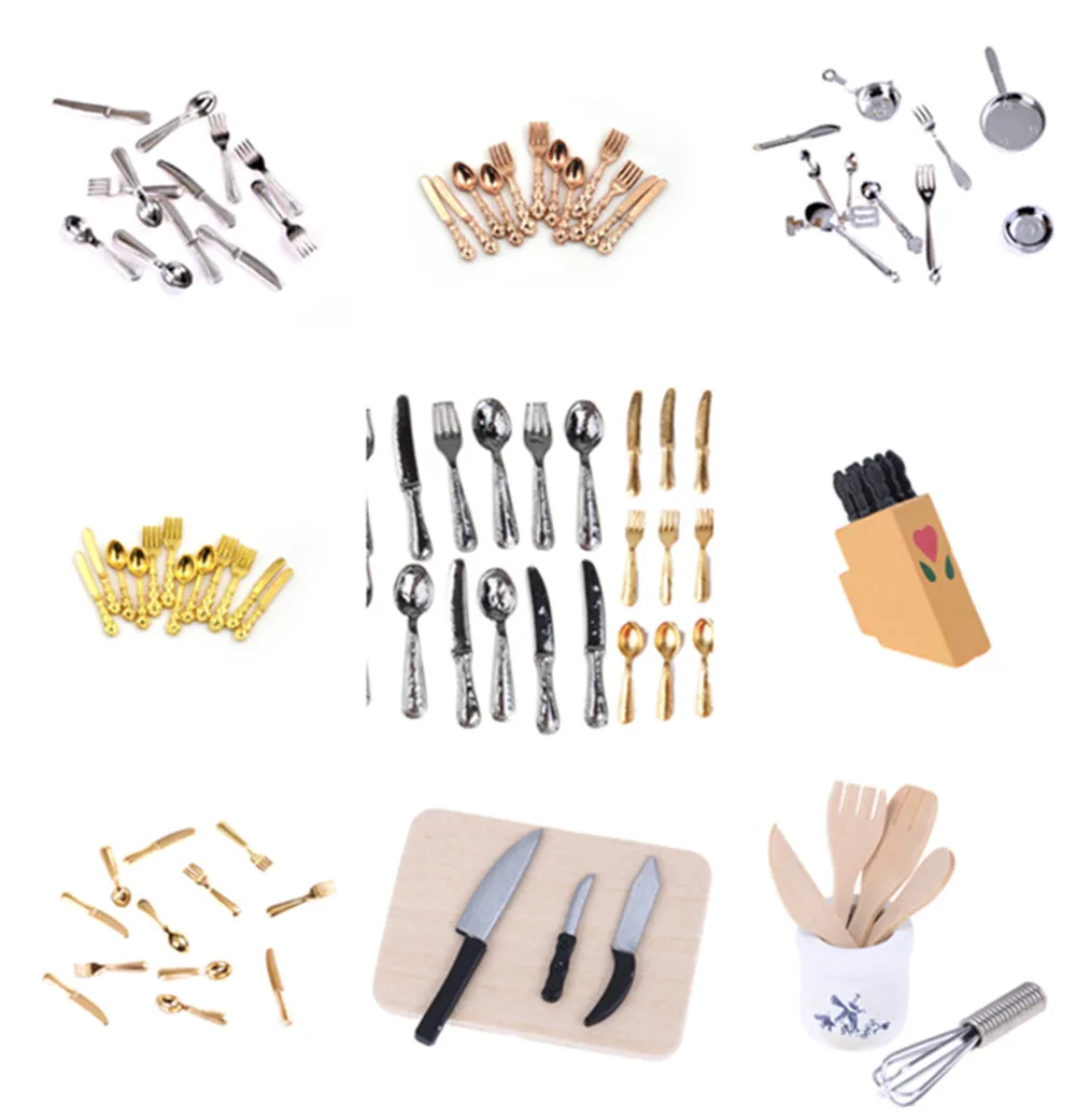 Винтажный кукольный домик 1:12, миниатюрная Посуда Столовые приборы...