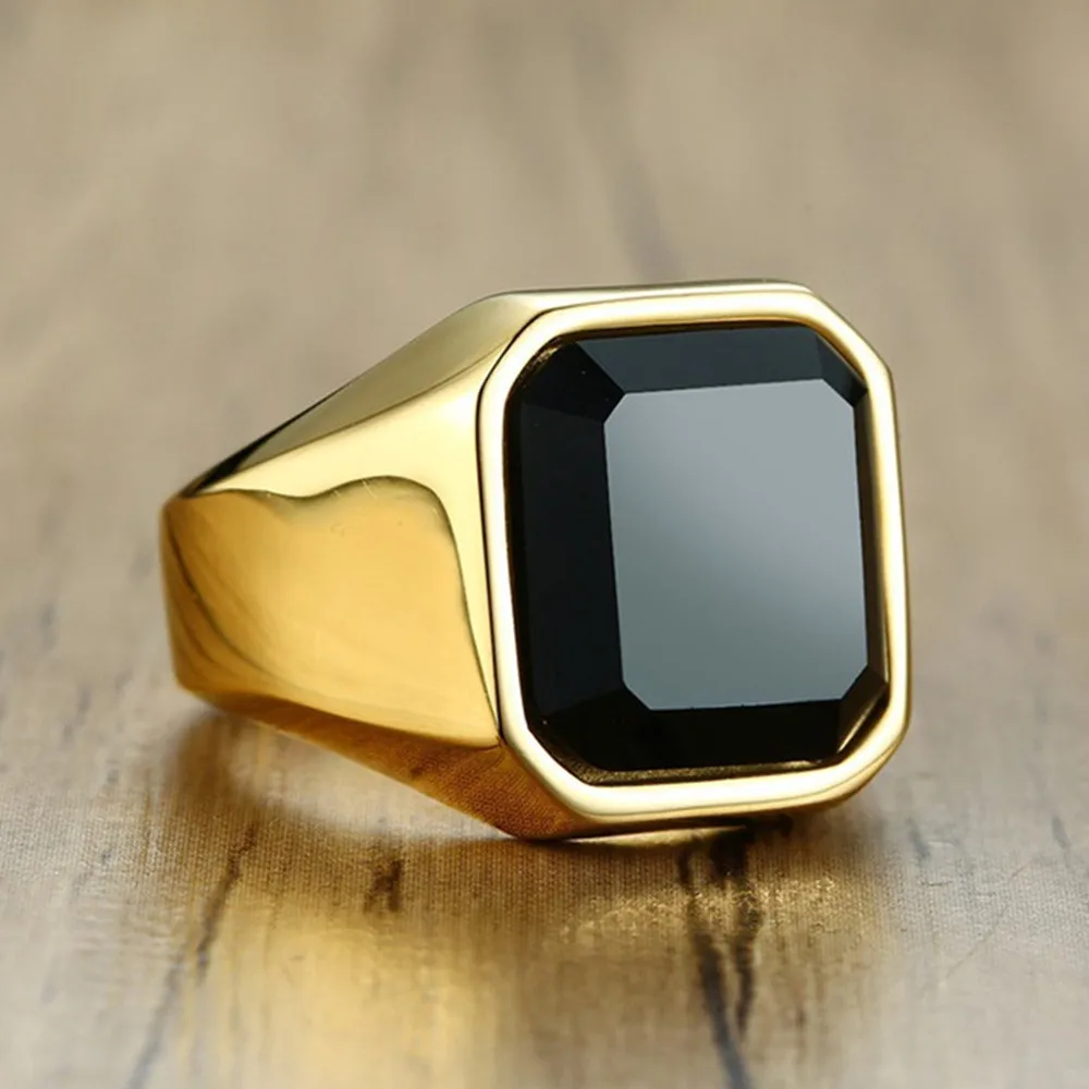 Мужские кольца с крупным черным драгоценным камнем, агат, цвет золото и серебро, титановая нержавеющая сталь, лаконичные модные крутые кольца, ювелирные изделия