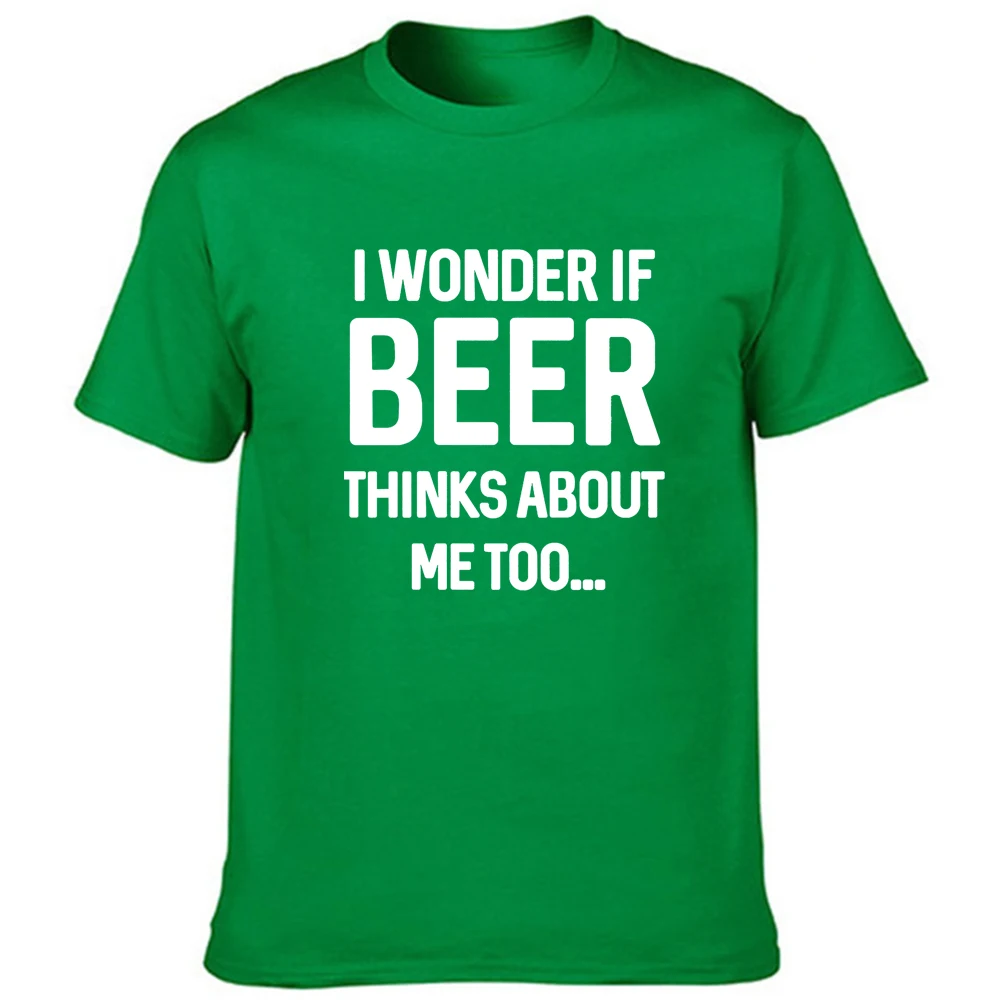 Мужская футболка с коротким рукавом I Wonder If Beer Think about Me Too Brewing, Мужская футболка с коротким рукавом, хипстерская футболка, классная мужская одежда