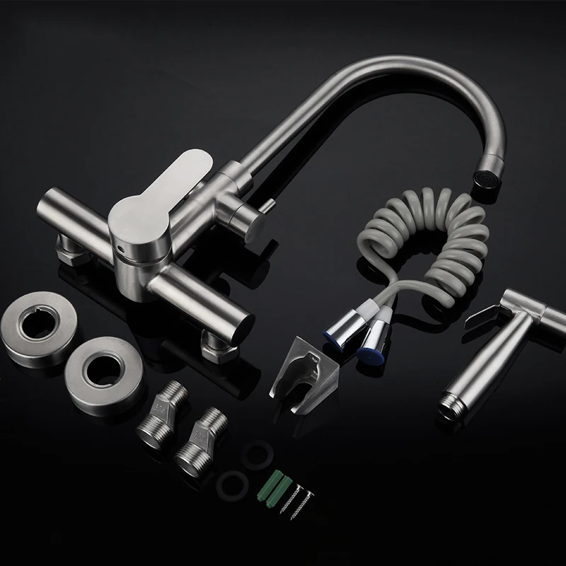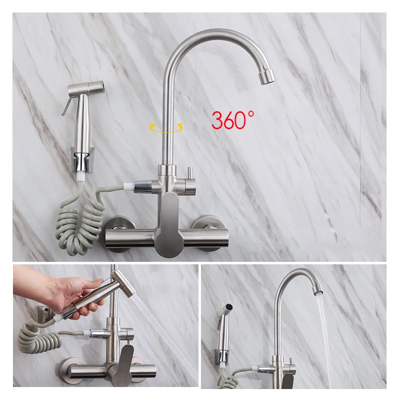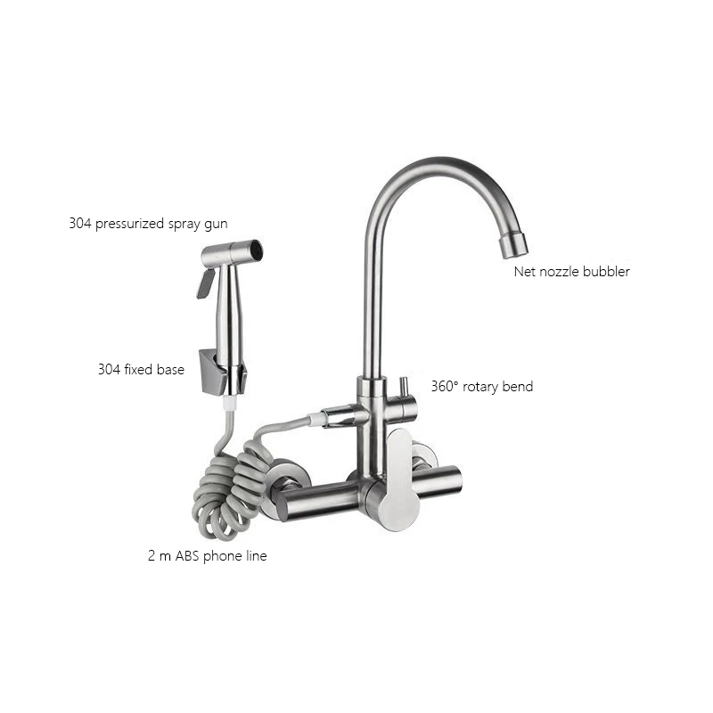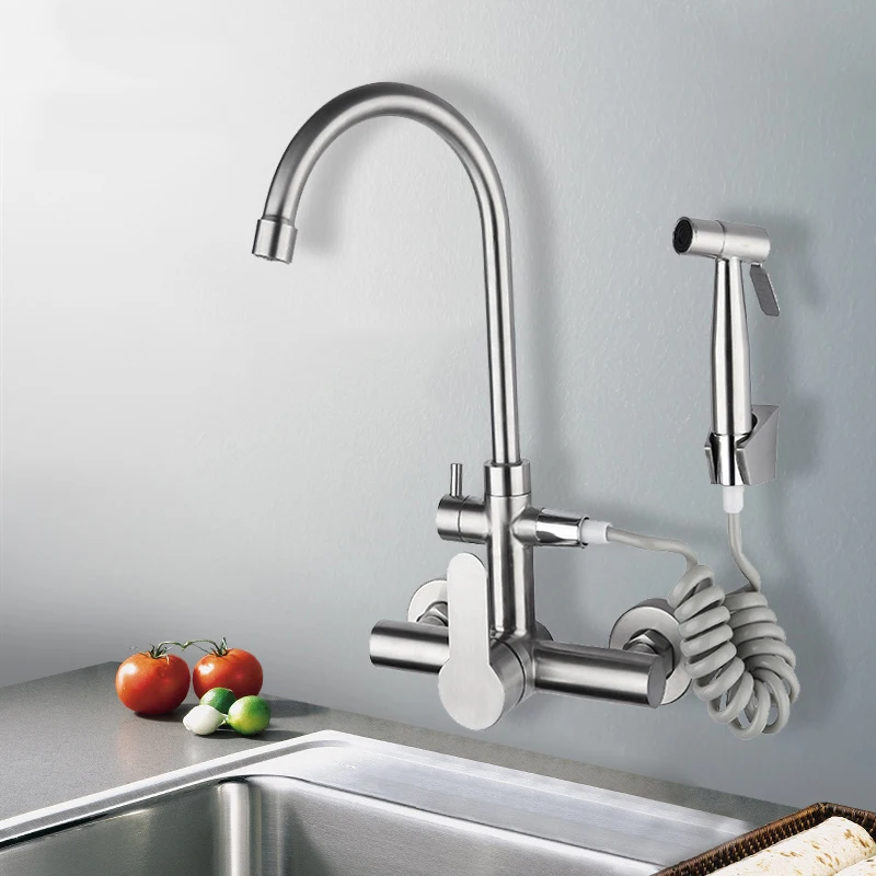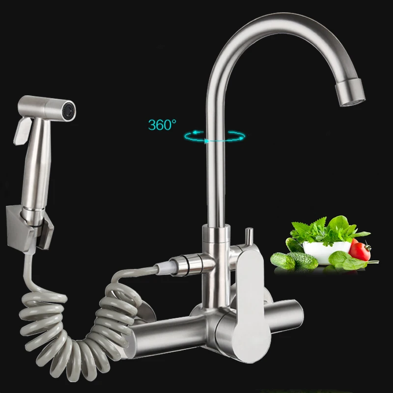 Смеситель для кухни из нержавеющей стали, поворот на 360 градусов, настенный смеситель для раковины с распылителем для душа патрубок для биде, Смеситель для холодной и горячей воды