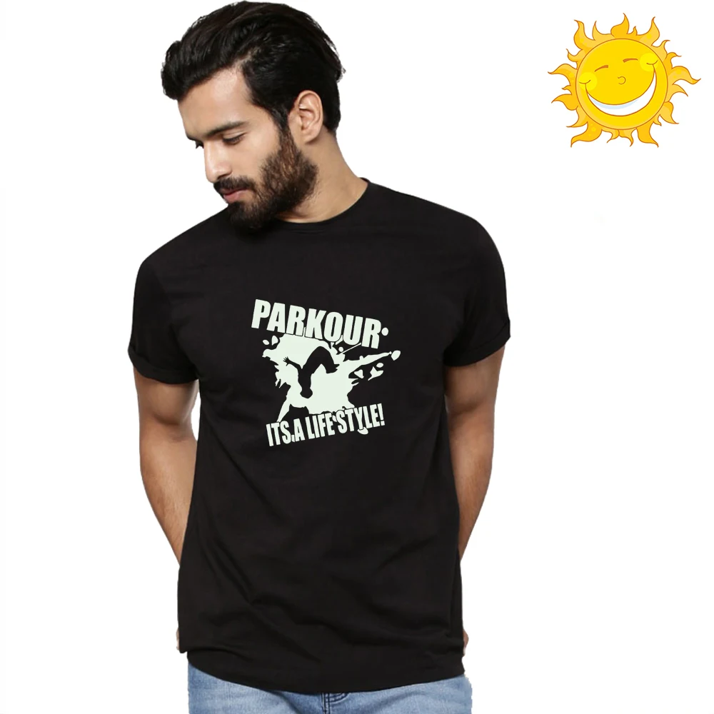 Мужская футболка с флуоресцентным принтом, светящаяся в Темная футболка году, с надписью
