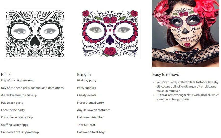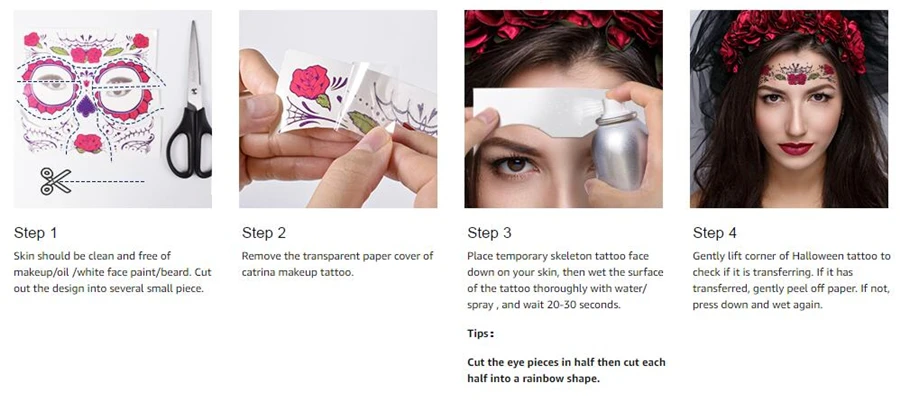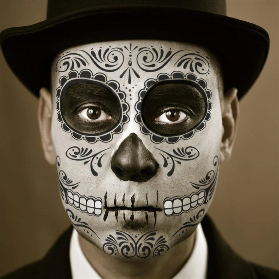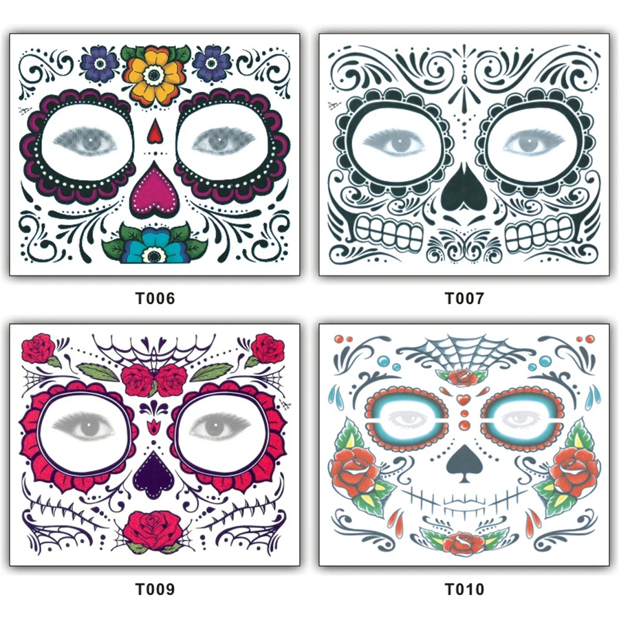 100 шт. Хэллоуин Декор тату-наклейки для лица для макияжа лица, для смешивания, стикеры День мертвых череп уход за кожей лица маска Водонепроницаемый Маскарад татуировки