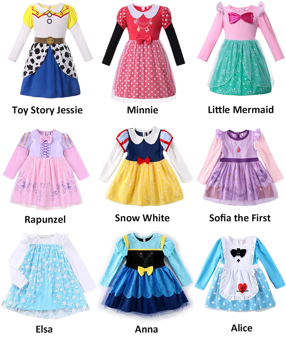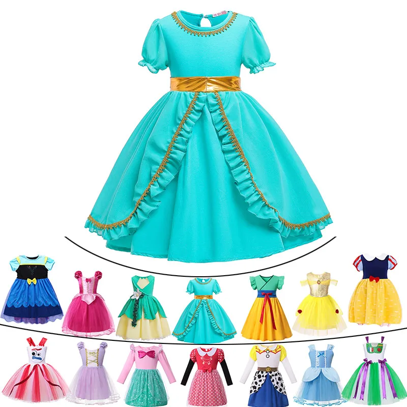 Одежда принцессы для маленьких девочек 2, 3, 4, 5, 6 лет Детское платье Аладдина, жасмин, хуамулан праздвечерние платье Эльзы, Анны, Белоснежки, Джесси Бо, костюм Бо Пип