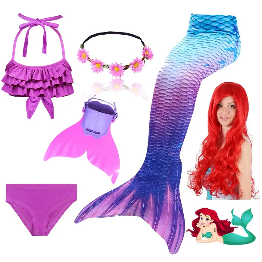 Детский купальный костюм с хвостом Русалочки, парик с моноластами для девочек, необычный костюм для косплея, купальный костюм, бикини