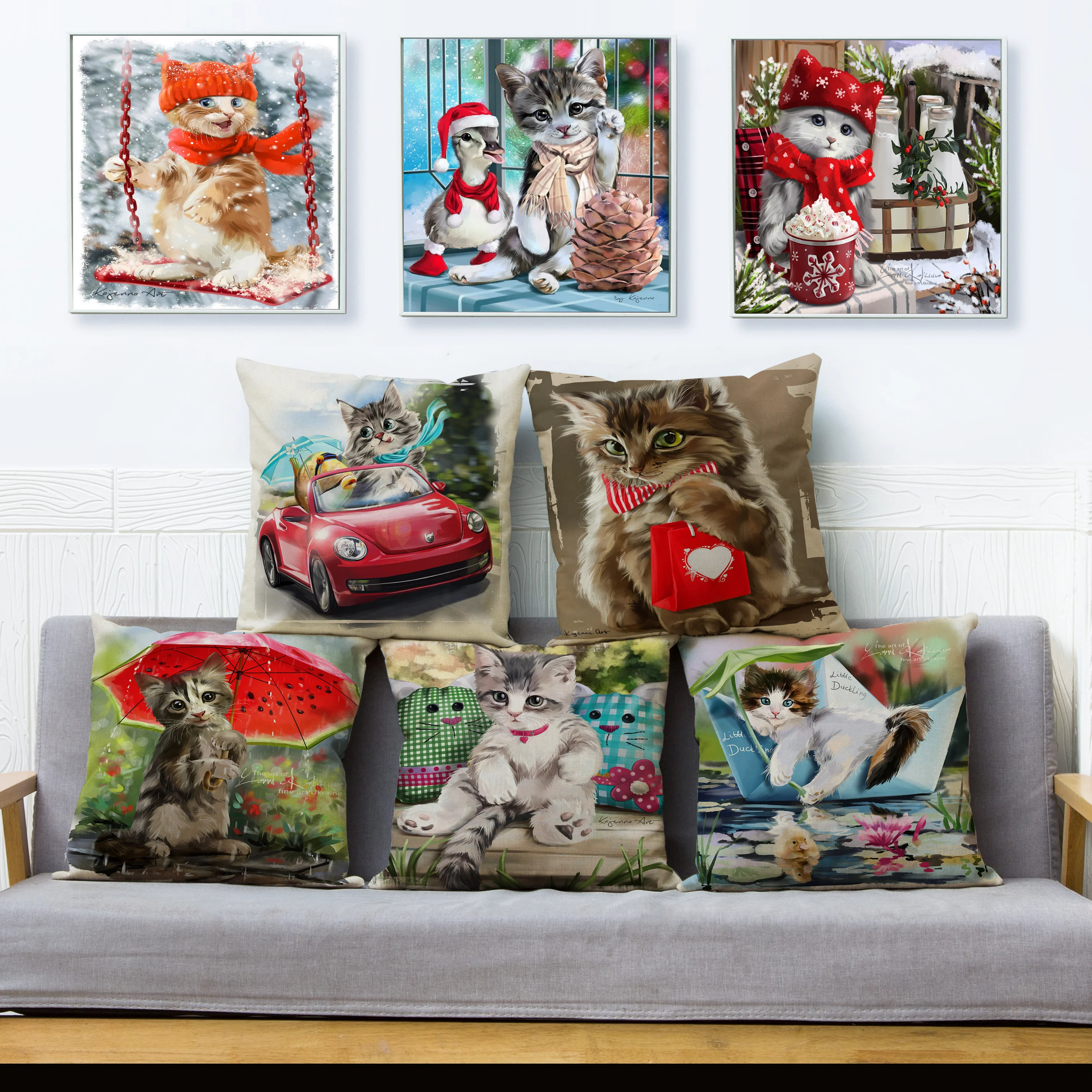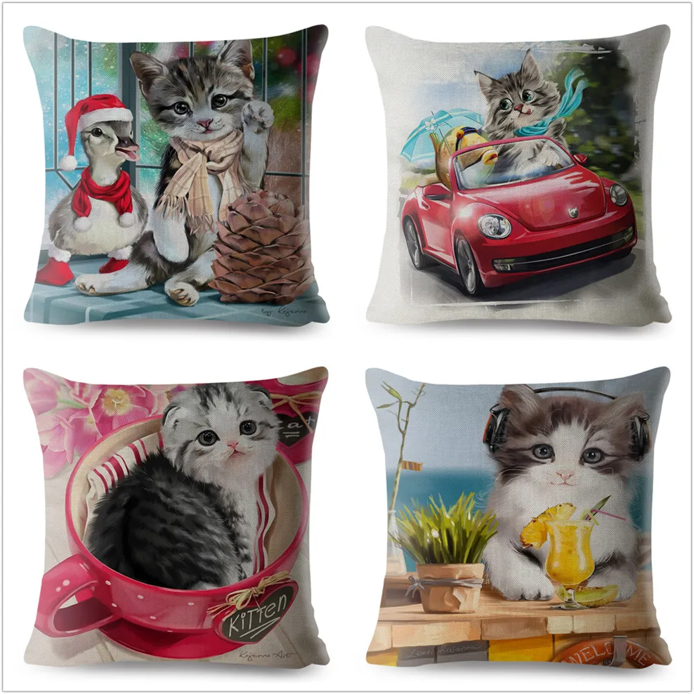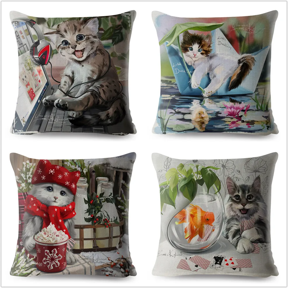 12 видов стилей, с рисунком в виде котиков, чехол для подушки с при...