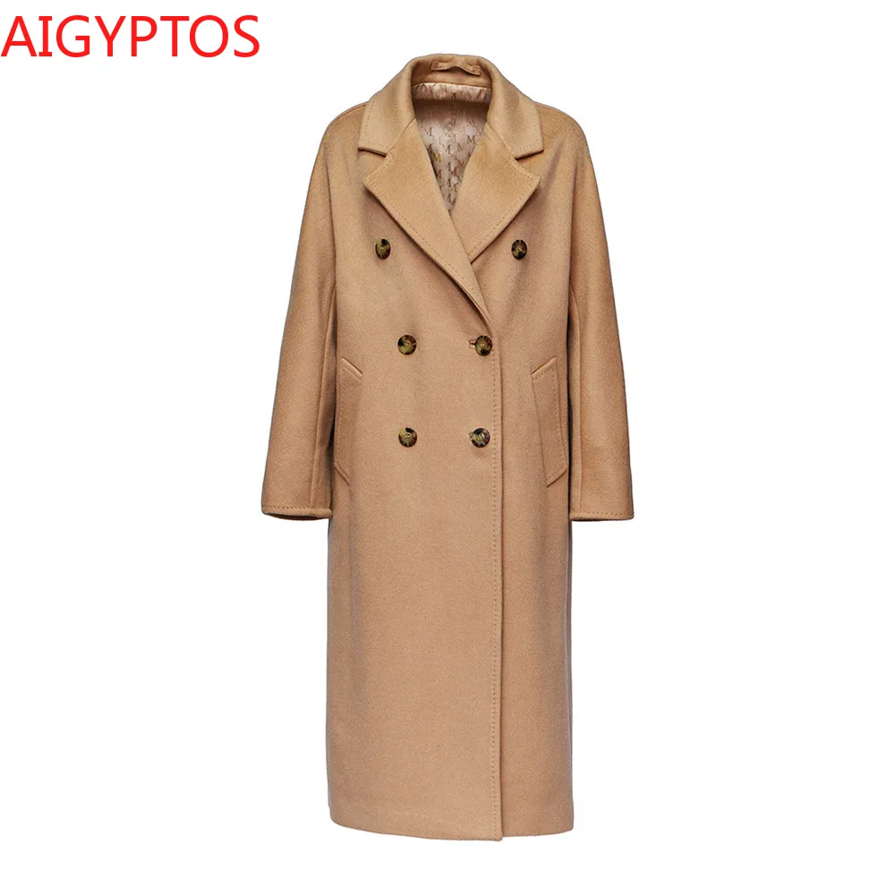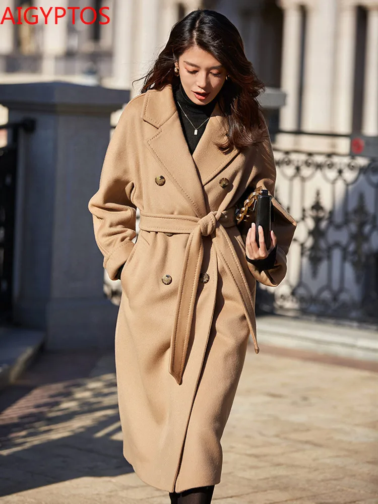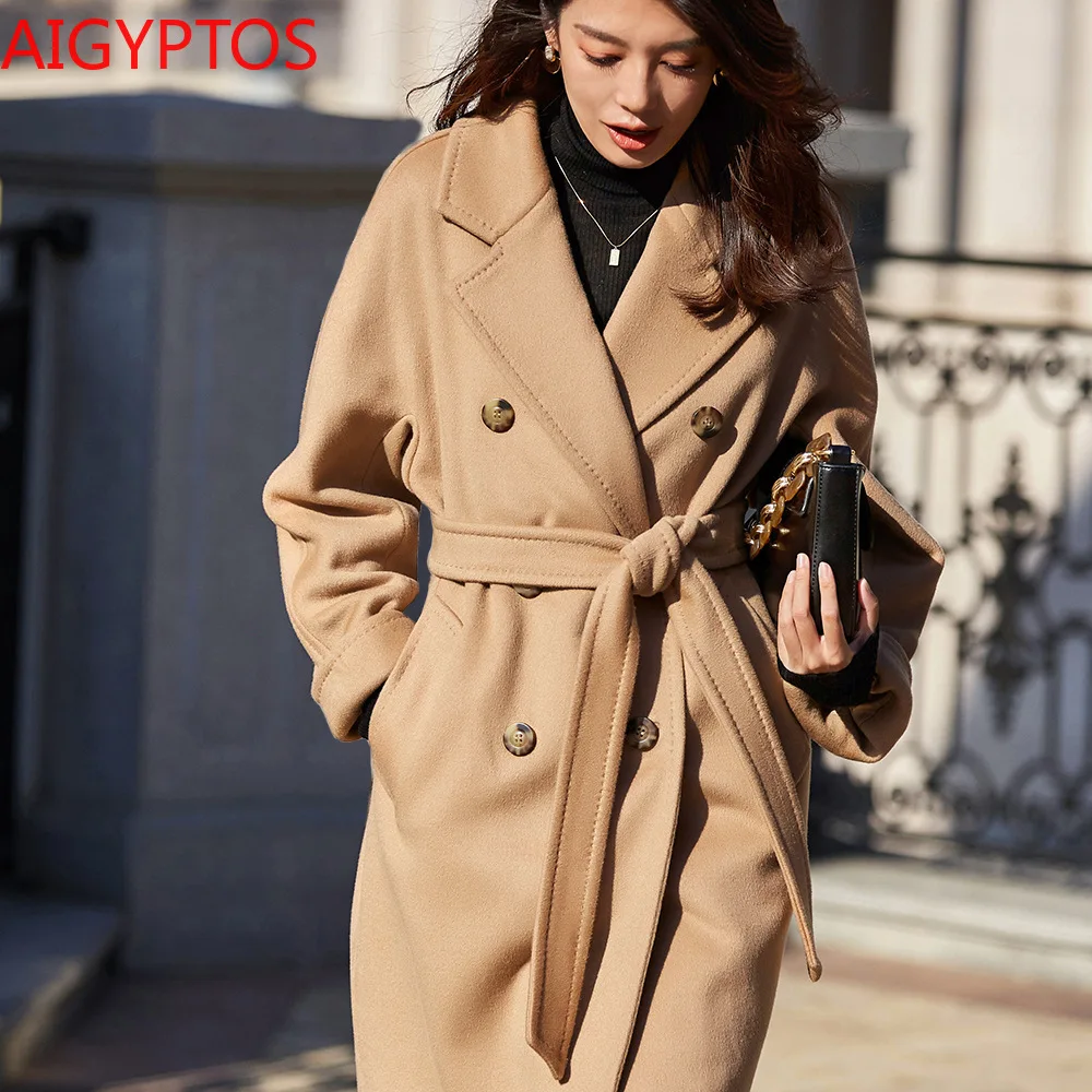 Оригинальный дизайн, женское осенне-зимнее Элегантное повседневное теплое пальто из 100% шерсти, двубортное пальто с поясом розового/Красного размера плюс, шерстяная куртка