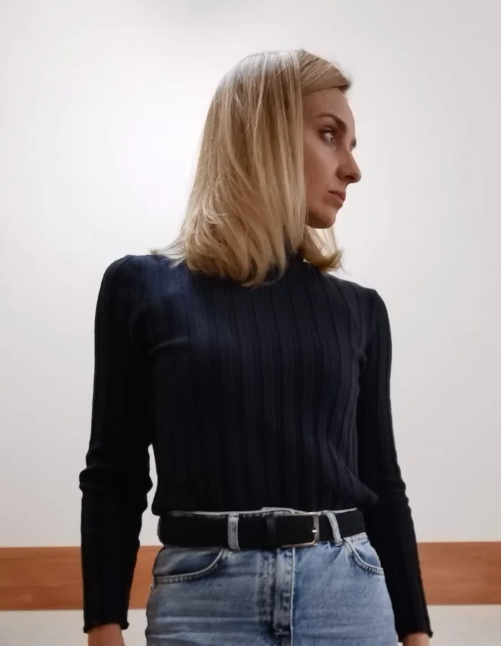 отличный гольфик, жена довольна. цвет тёмный, как на картинках (т.е. не совсем нави блю, тот более ярким должен быть). качество как обычно у данного продавца - на высоте.