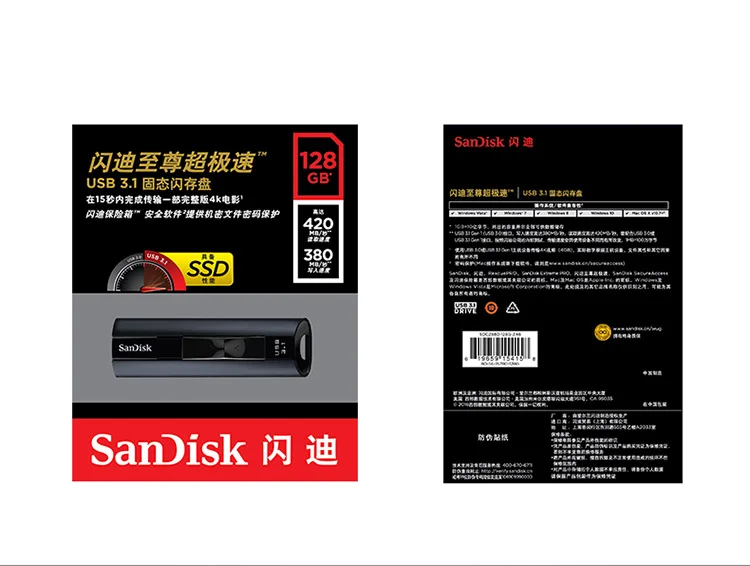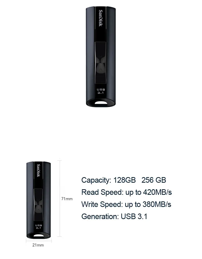 100% двойной флеш-накопитель SanDisk флэш-накопитель Usb Memory Stick CZ880 Extreme PRO 128 ГБ USB 3,1 твердотельный накопитель флэш-накопитель 256 ГБ флэш-накопитель высокого Скорость 420 МБс.