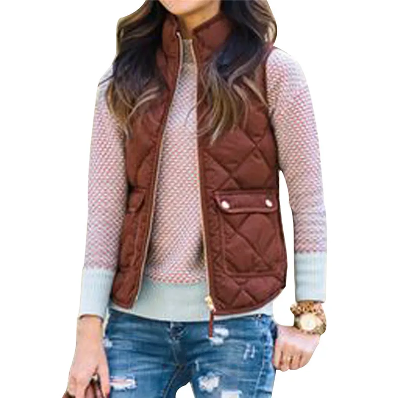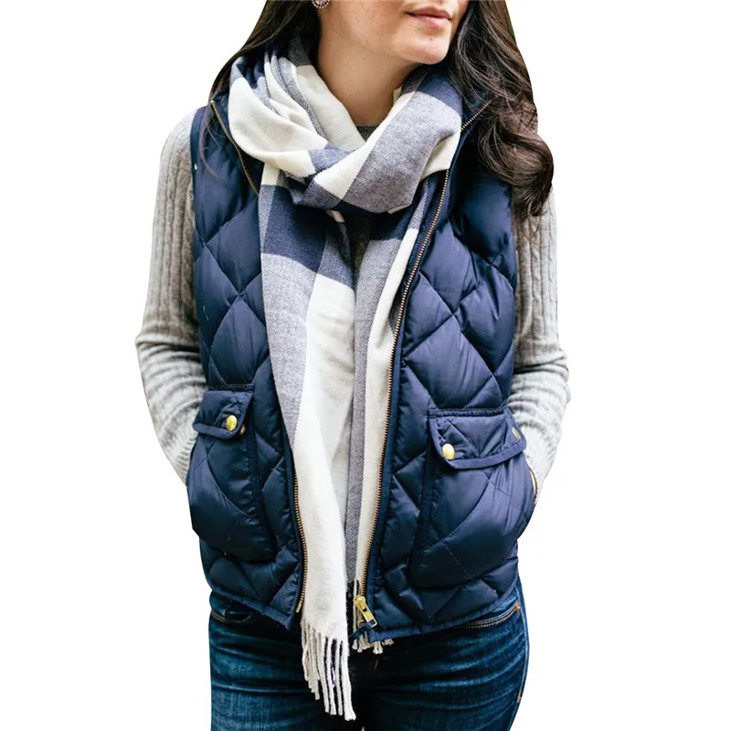Мягкий женский жилет с воротником-стойкой, Легкая стеганая плотная ...