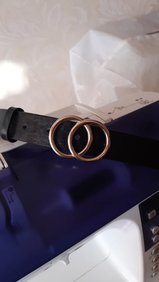 Хороший ремень, на удивление отлично держится, несмотря на отсутствие в конструкции металлического язычка. Первое время сильно пах кожзамом, но запах выветрился после нескольких дней проветривания на балконе. Ношу на талии поверх пиджака или трикотажного платья - длина оптимальная.