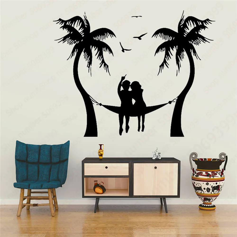 Настенная виниловая наклейка на стену с изображением пляжа чайки, пальмы, пары, расслабляющих, путешествий, побережья, ванной комнаты, школьного общежития, художественная роспись LW617