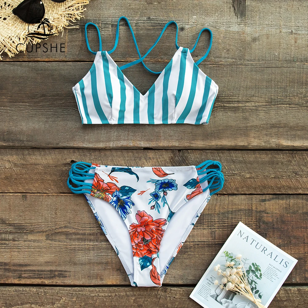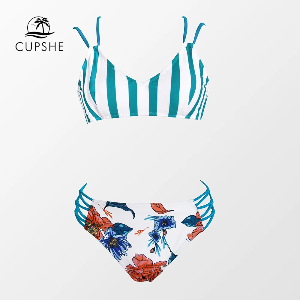 CUPSHE, комплект бикини в полоску и цветочек с высокой талией, сексуальный купальник с вырезами, два предмета, купальник для женщин, 2020, пляжный купальный костюм