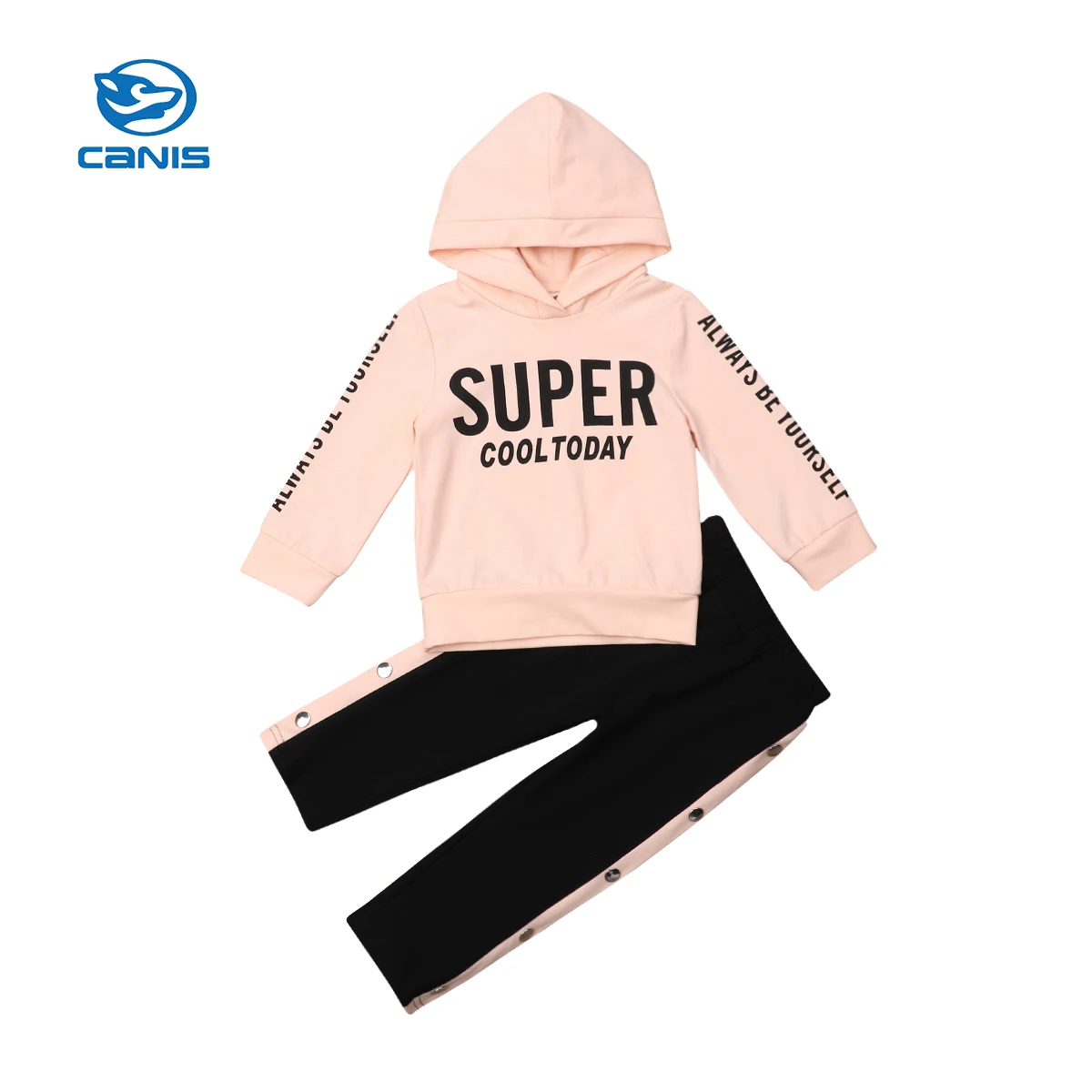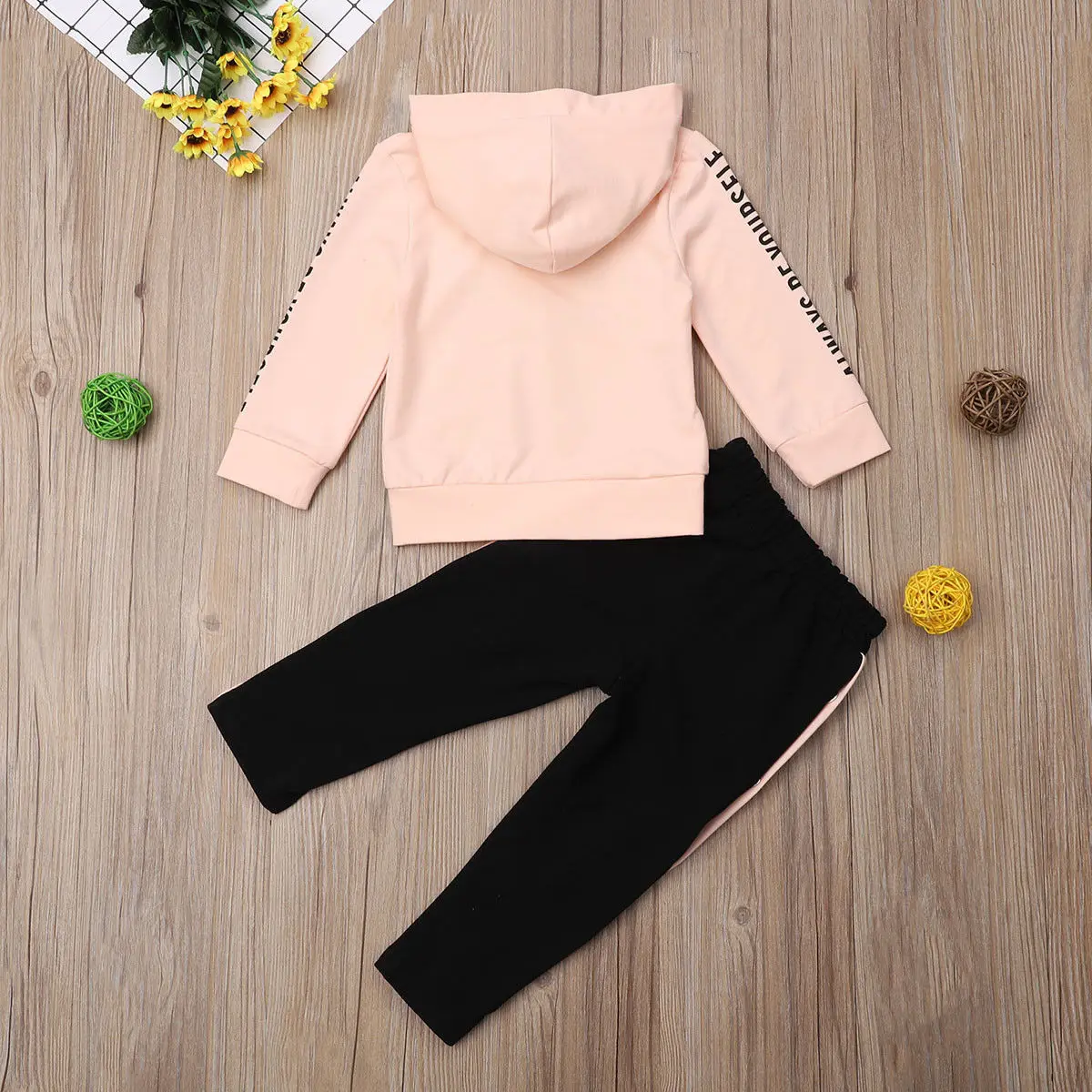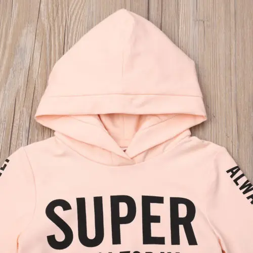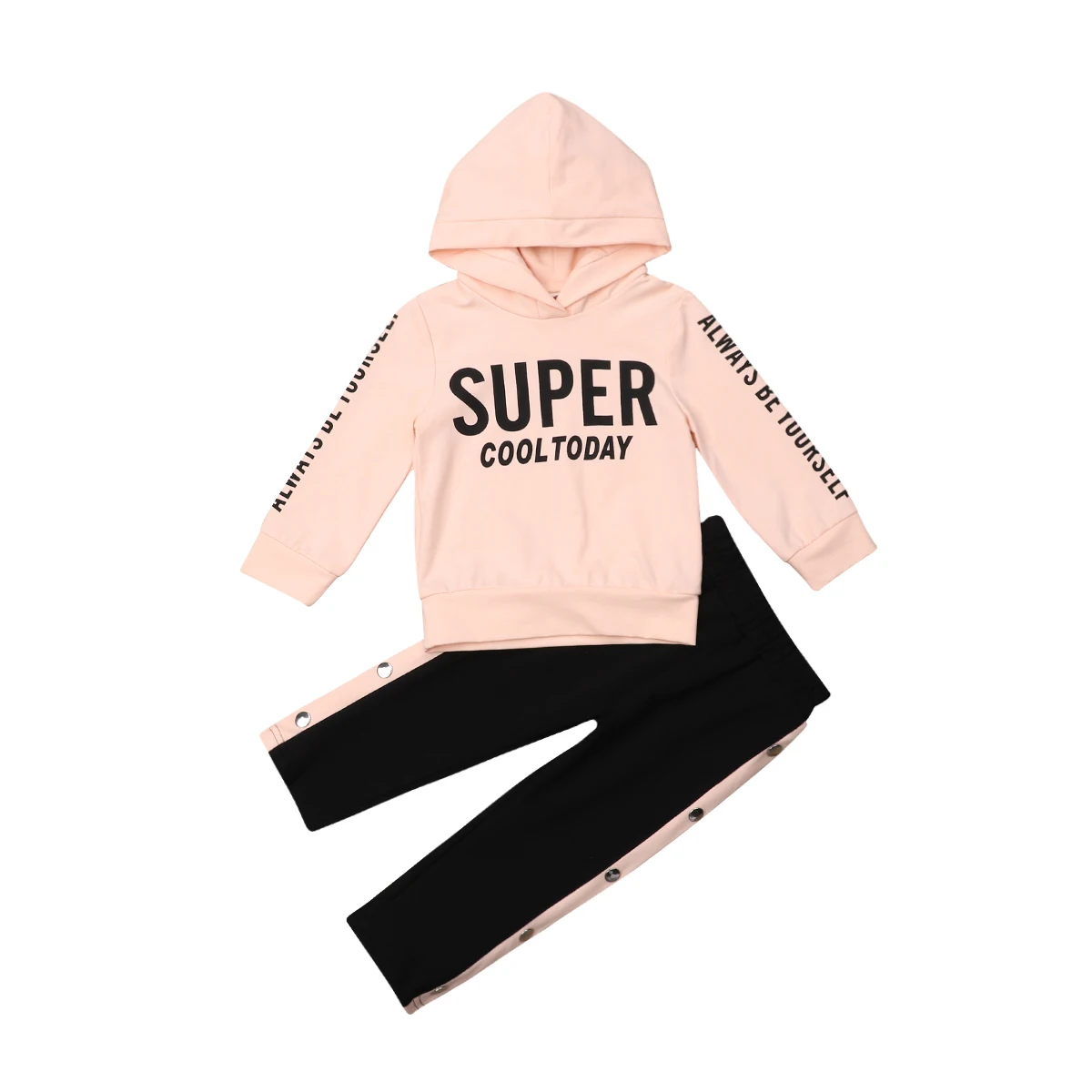 Костюм спортивный Pudcoco для девочек, осенний, теплый, толстовка с капюшоном и длинными рукавами + длинные штаны с пряжкой