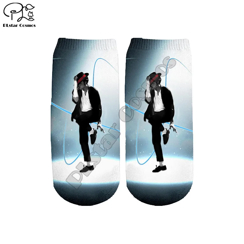 PLstar Cosmos Прямая поставка Майкл Джексон Мода 3DPrint ЖенщиныМужчинымальчикдевочка Харадзюку красочные повседневные короткие носки до щиколотки Style2