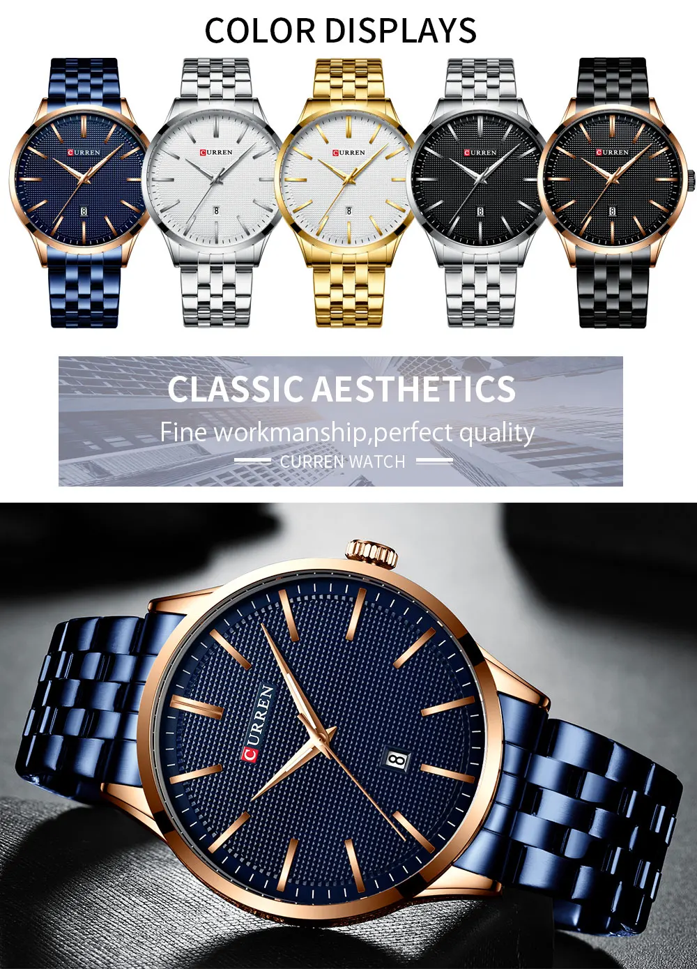 Модные кварцевые часы для мужчин CURREN, новые мужские часы из нержавеющей стали, мужские синие наручные часы, повседневные деловые часы