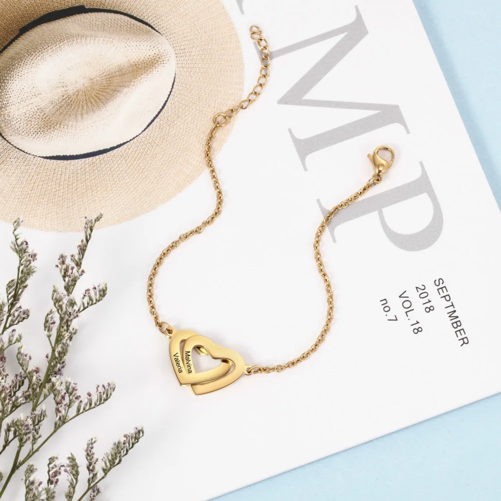 Персонализированные браслеты, модные ювелирные изделия из нержавеющей стали в форме сердца, 2 имени, очаровательные звенья, браслеты, обещанный подарок для женщин