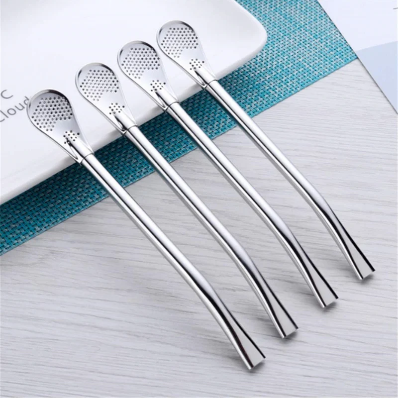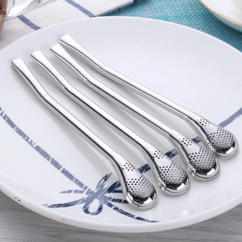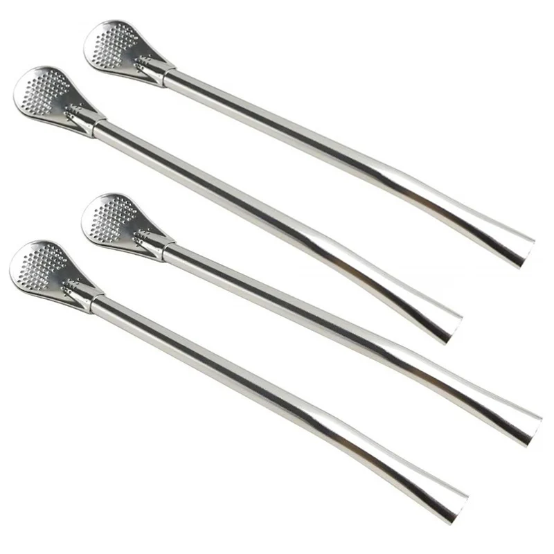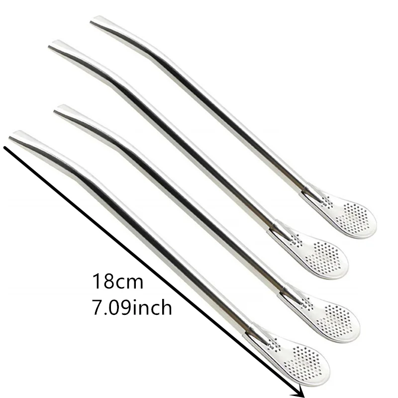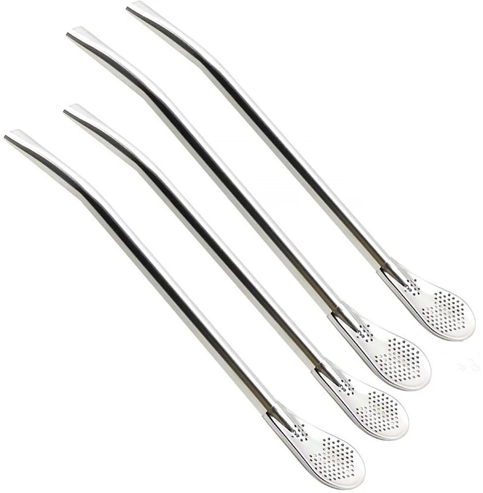 Соломинки для питья из нержавеющей стали, 4 шт., многоразовые, с фильтровальной ложкой, Yerba Mate Bombilla, металлические трубочки для чая