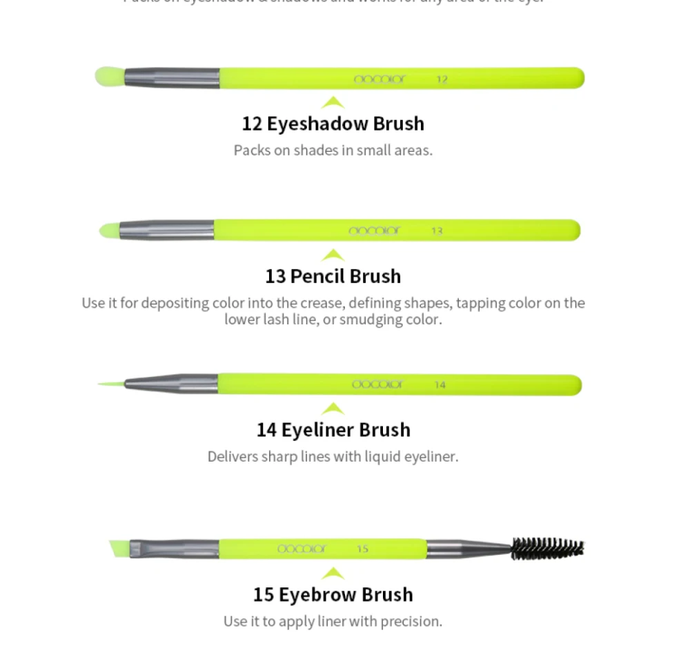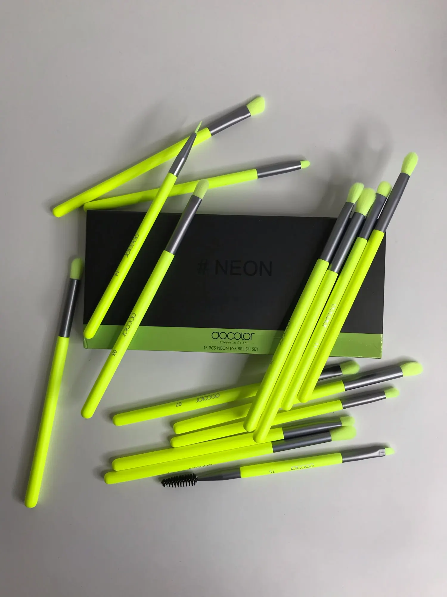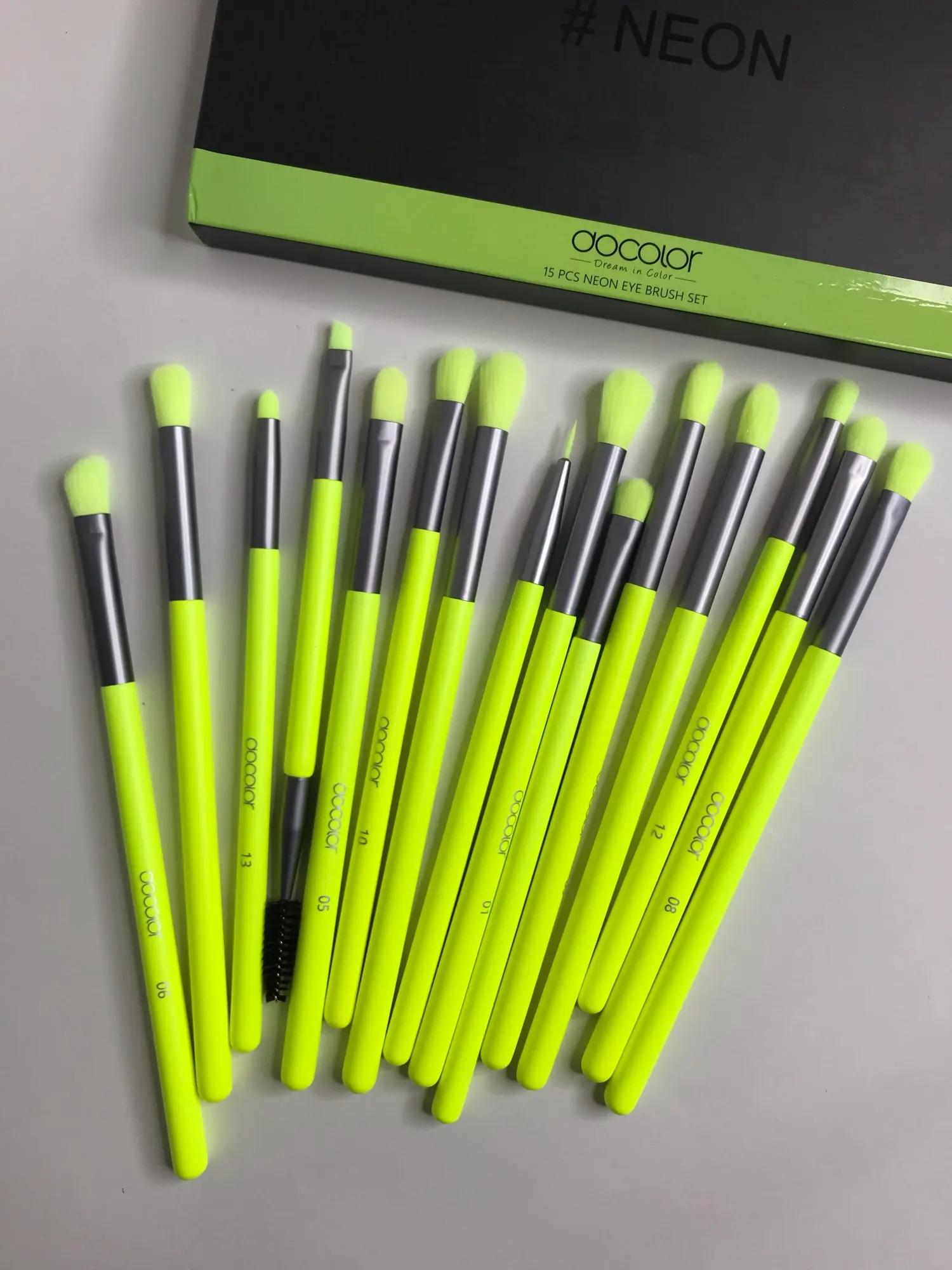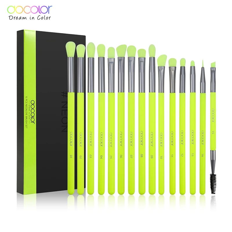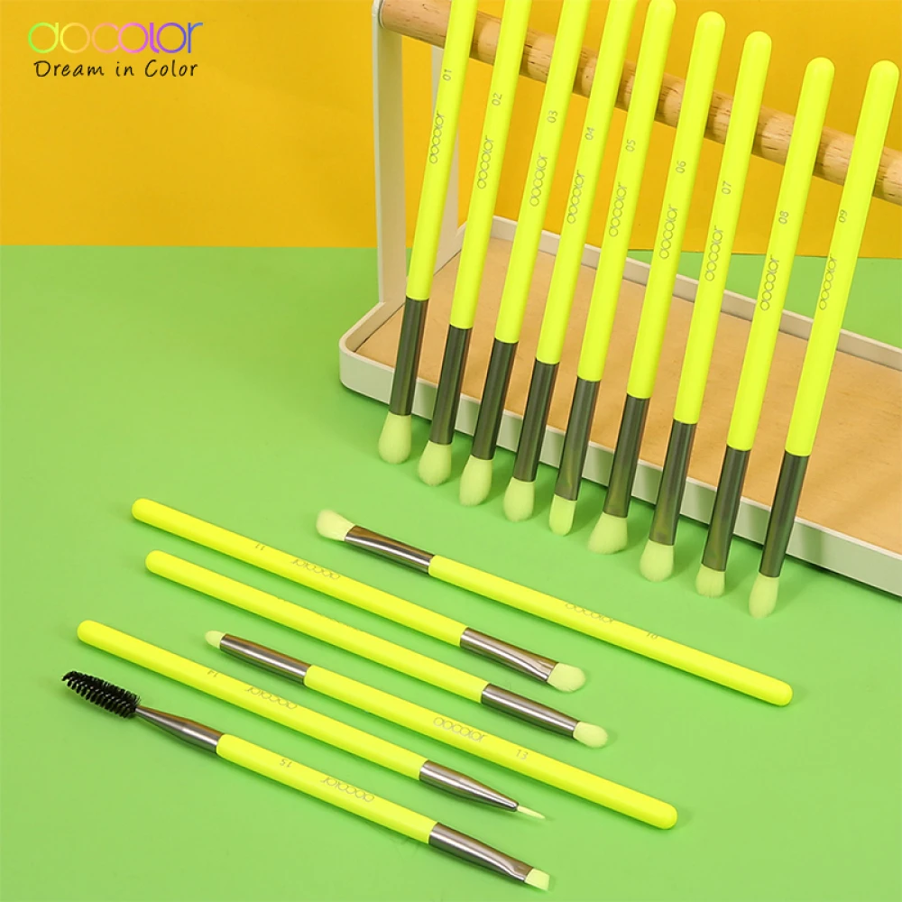 Docolor кисти для макияжа глаз 15 шт. неоновый зеленый набор кистей для теней для век Профессиональные Тени для век Смешивание консилер кисточка для Бровей Ресниц