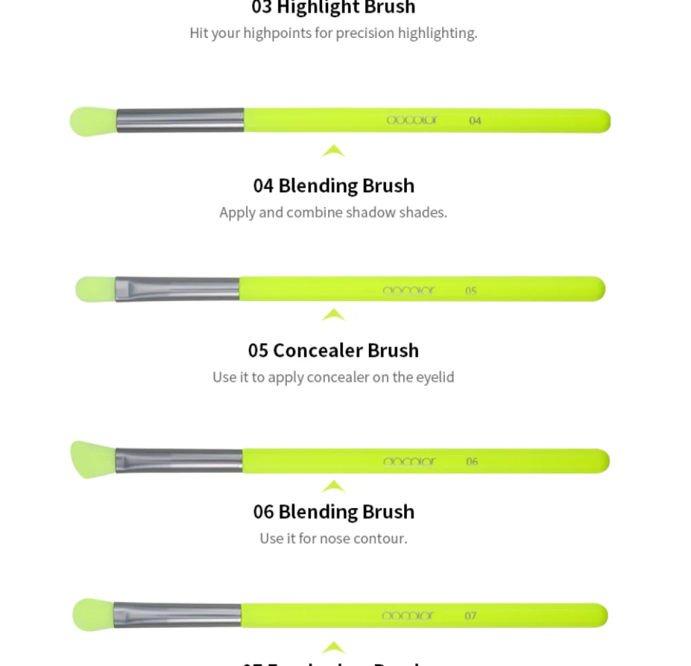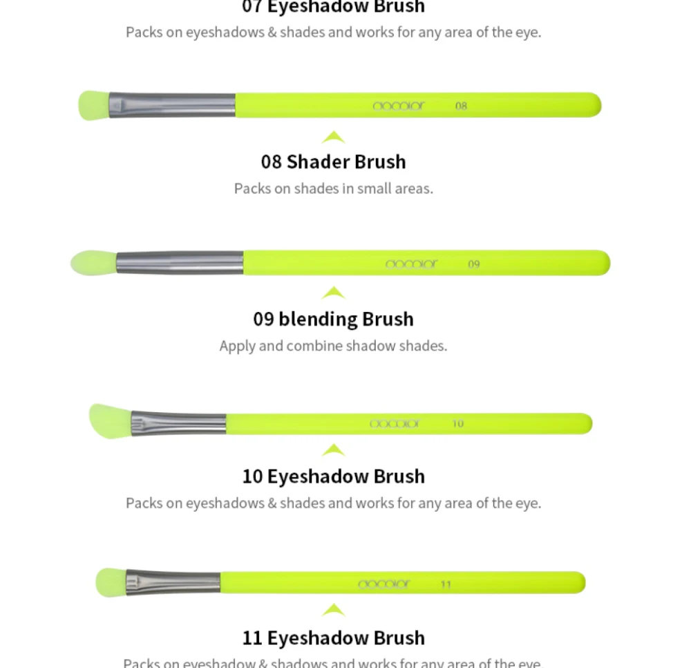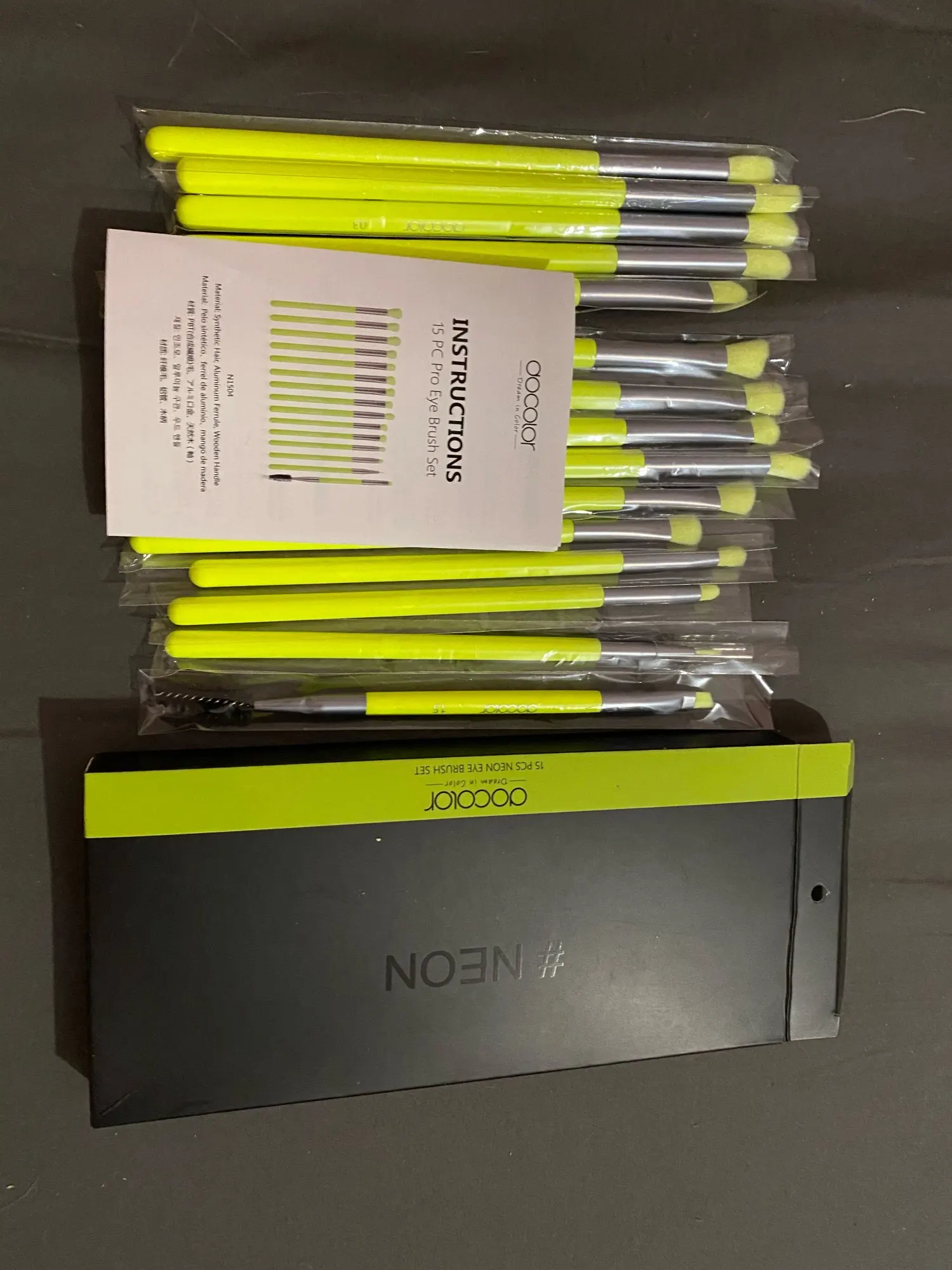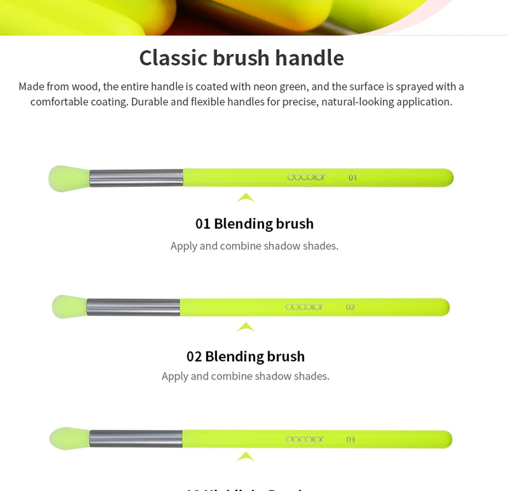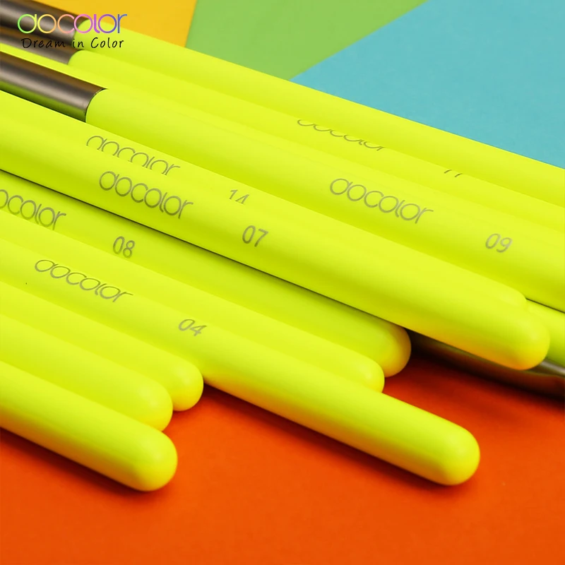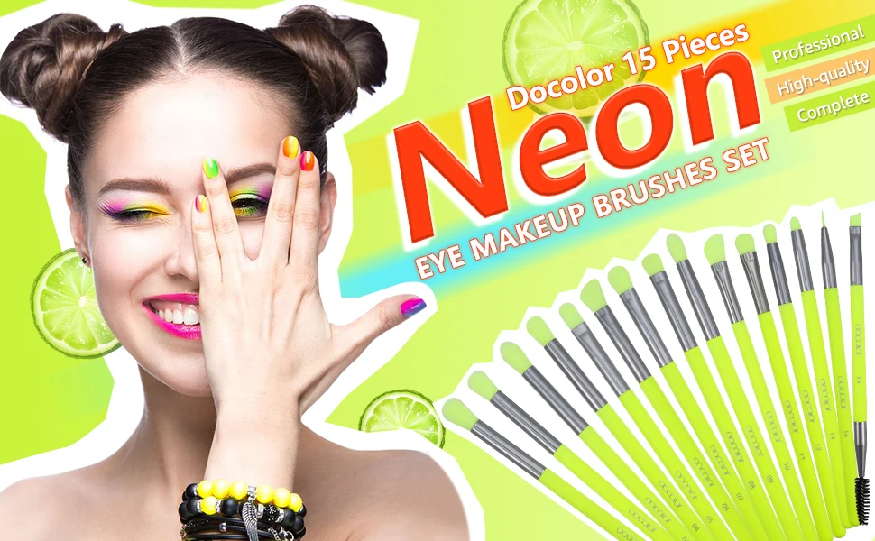 Docolor кисти для макияжа глаз 15 шт. неоновый зеленый набор кистей для теней для век Профессиональные Тени для век Смешивание консилер кисточка для Бровей Ресниц