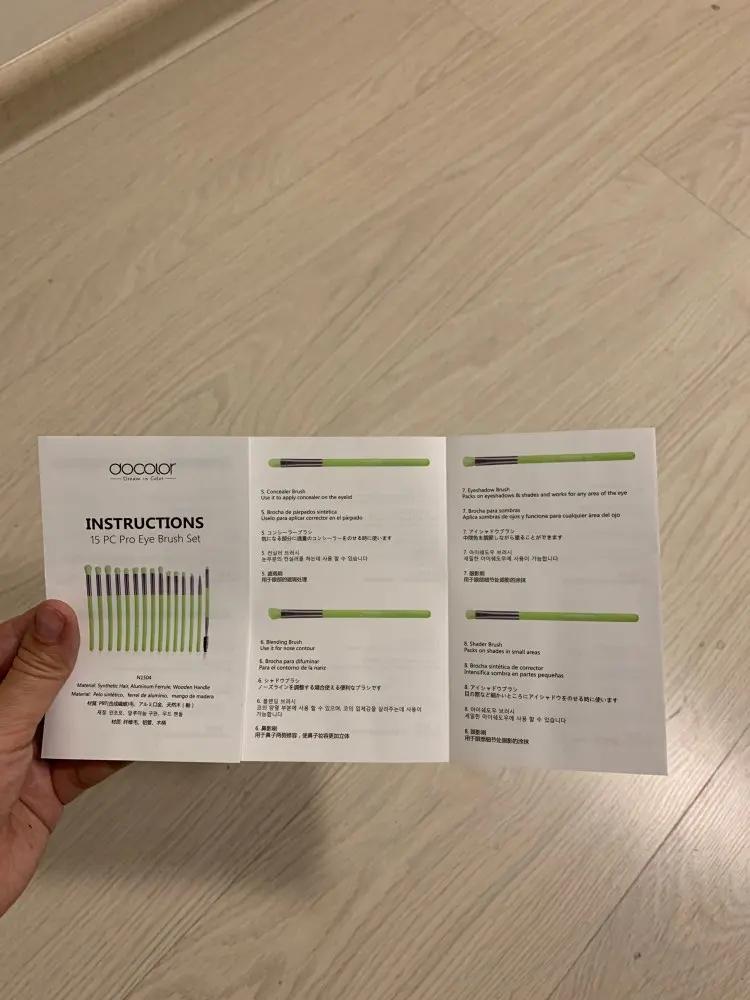 Быстрая доставка, прибыла менее месяца в мою страну, очень хорошее качество кистей и с инструкцией по эксплуатации, чтобы узнать, для чего нужна каждая кисть