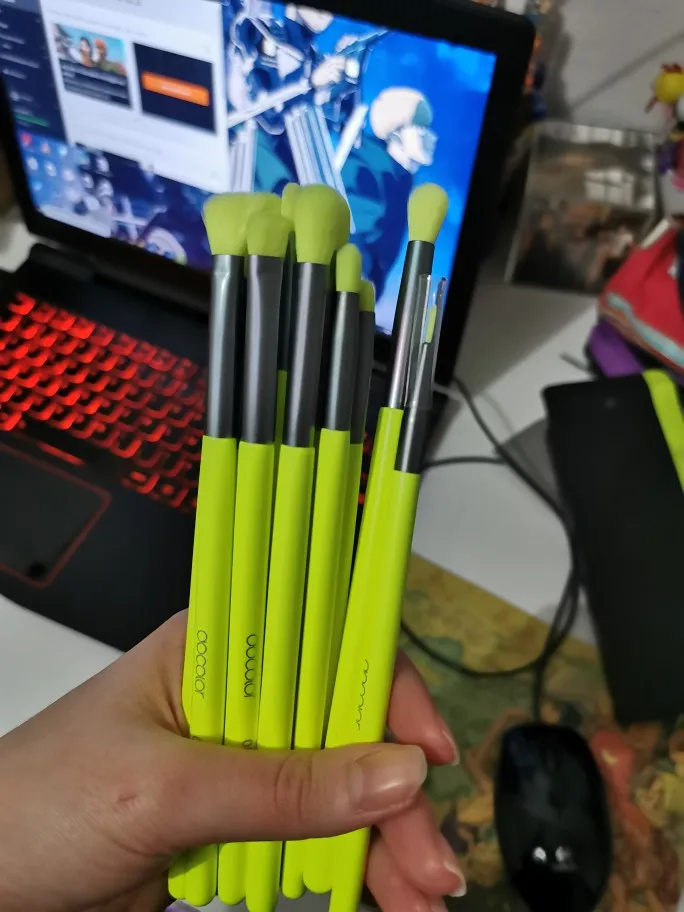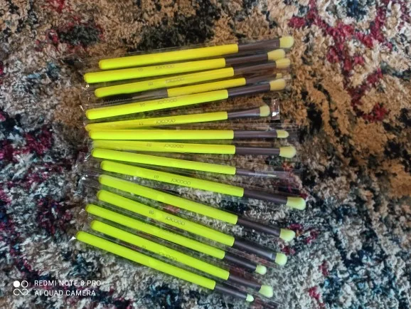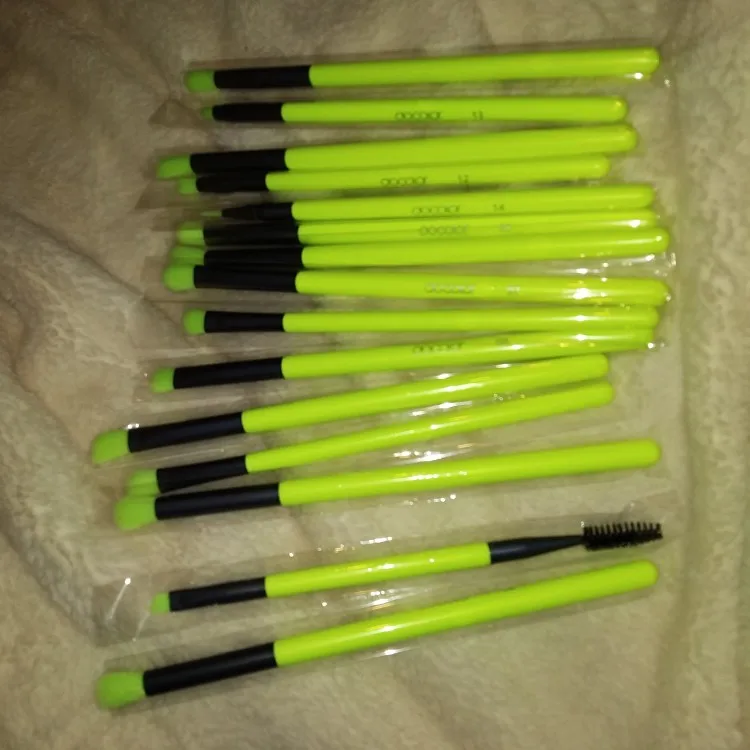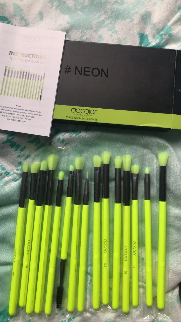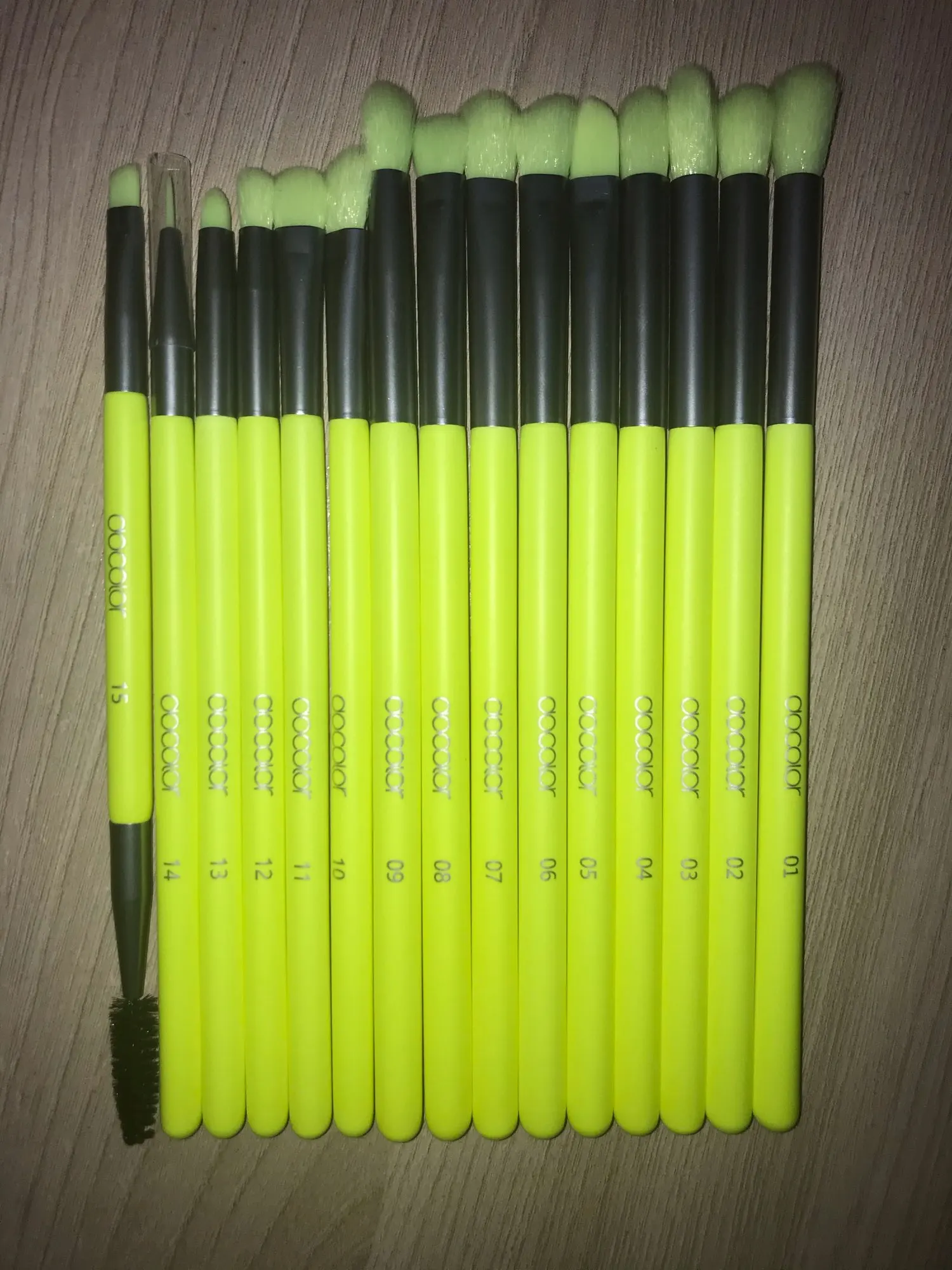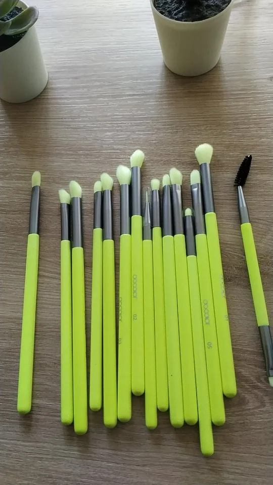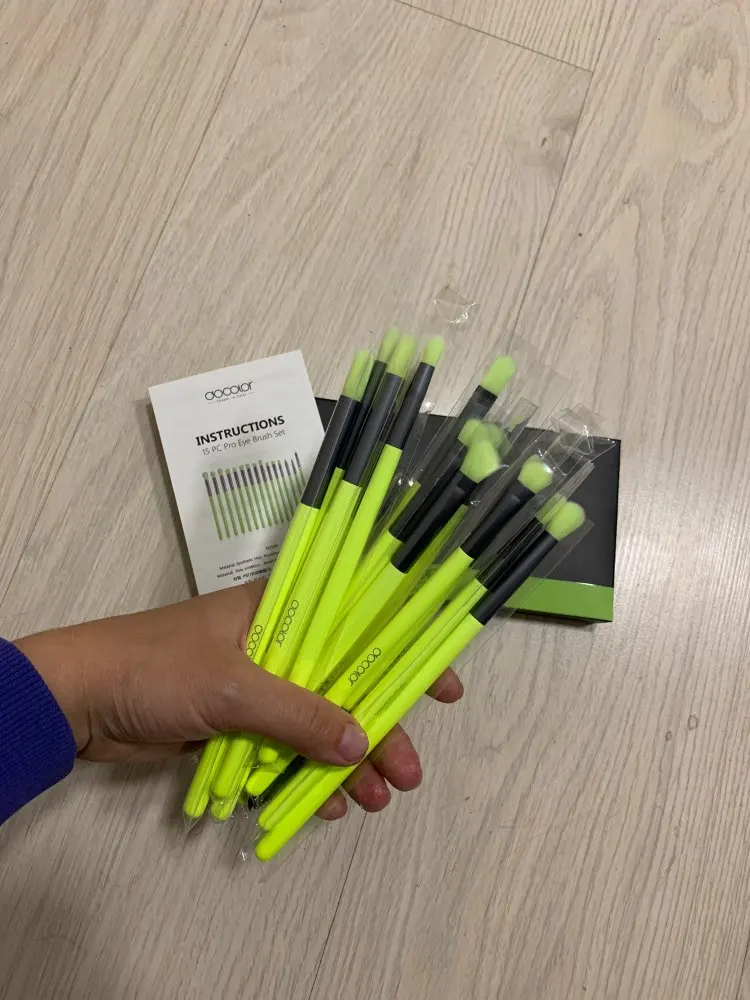 Кроме этих 15 кистей для теней, купил и другие наборы одного цвета! Очарование, потрясающее качество, очень мягкое и прочное! Не пожалеете, что выбрали неоновый зеленый цвет, они тоже красивые! Продукты были хорошо упакованы в мешки-пузырьки и доставлены очень быстро (14 дней для Японии)! Спасибо, все подошло без каких-либо дефектов!