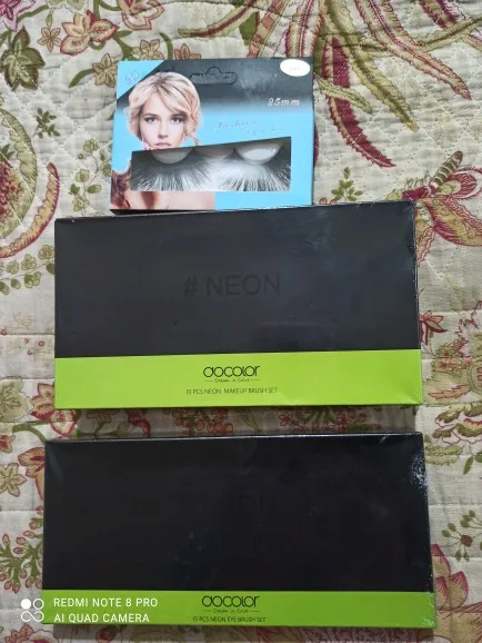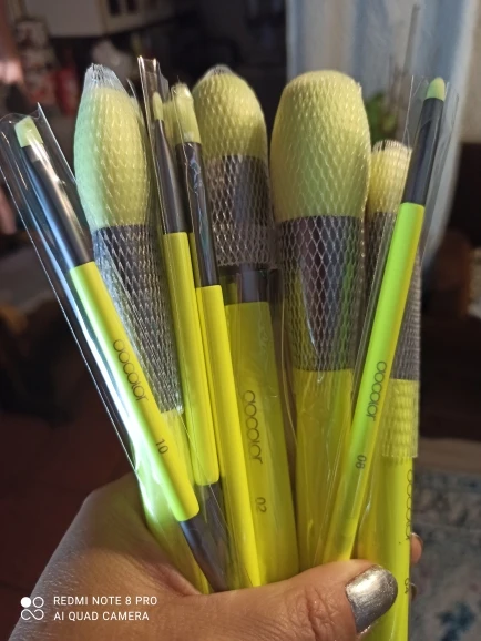 Очень приятно, запах c более неоновый, чем показано на картинке, они очень мягкие, один с небольшим отрывом краски, и они имеют запах, Я действительно не знаю, как это сделать, они очень хорошо упакованы, с пузырьками, Они также привлекли очень драматические ресницы, они-дивные, по сравнению с другими наборами в мягкости, они действительно намного мягче, я попробую их все еще наносить макияж, но это очень качественные кисти.