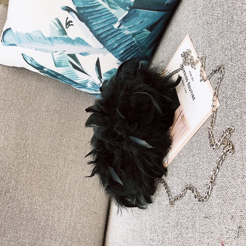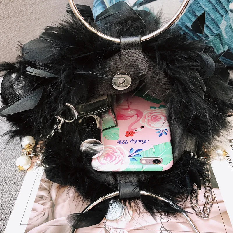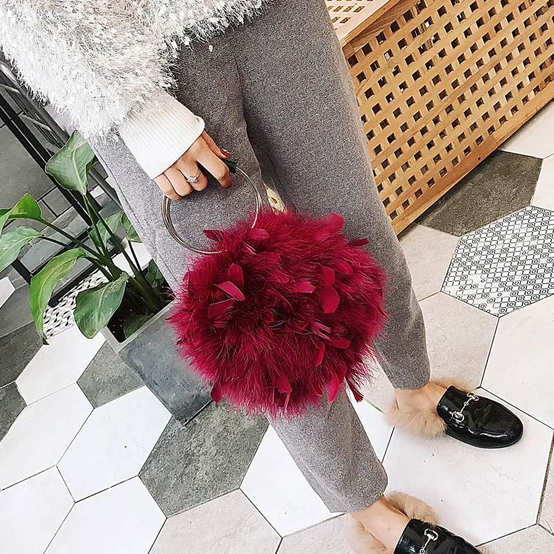 Роскошная сумка с перьями страуса, Женская круглая сумка, маленькая цепочка, наплечная сумка, женские вечерние сумки-клатчи для свадьбы, кошелек