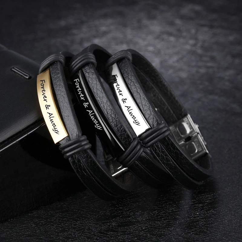 Мужской кожаный браслет с гравировкой имени, 3 цвета