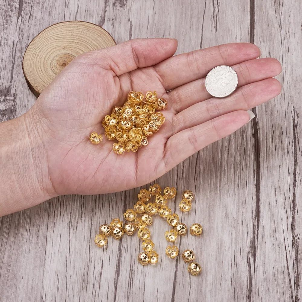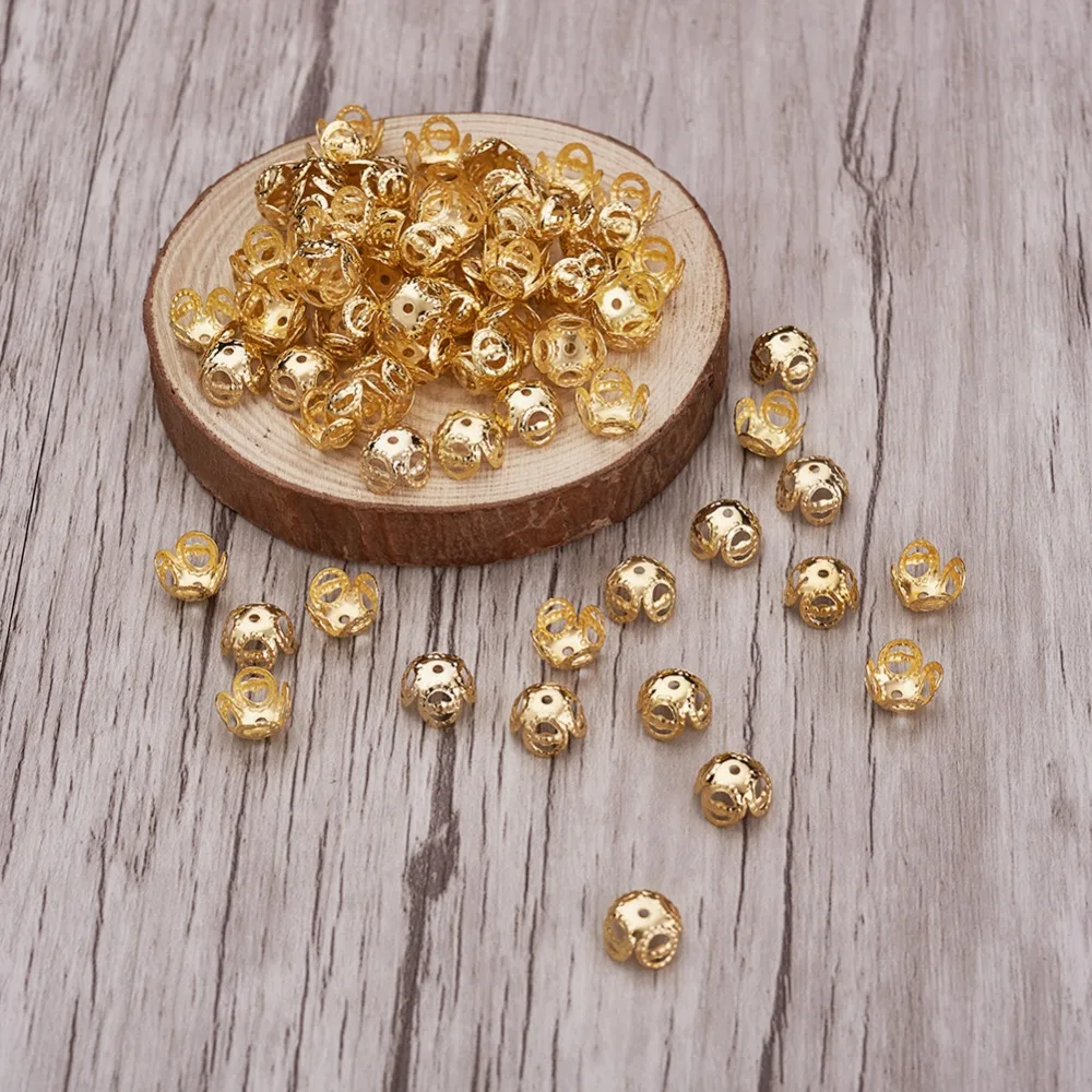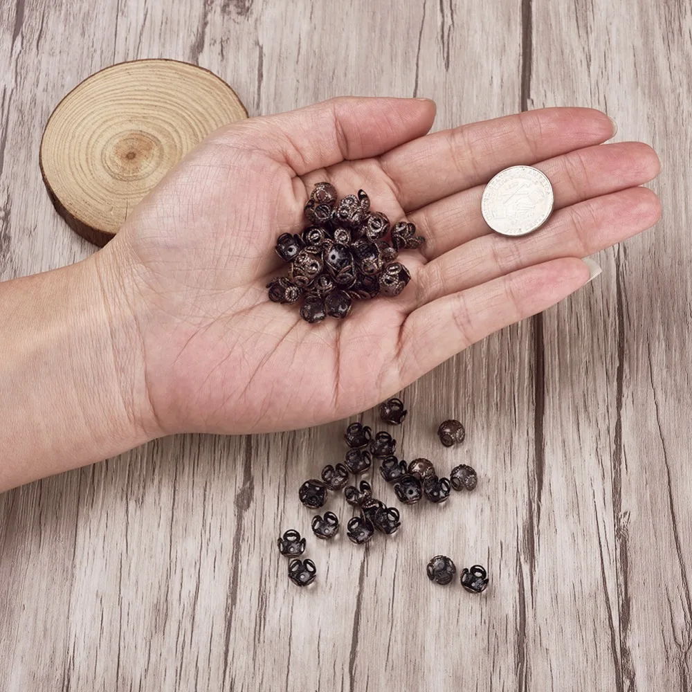Колпачки для бусин железные, 8x5 мм, 4 лепестка, без никеля, для самостоятельного изготовления браслетов, ювелирных изделий, золотисто-красные, медь; Античная бронза, 2000 шт.