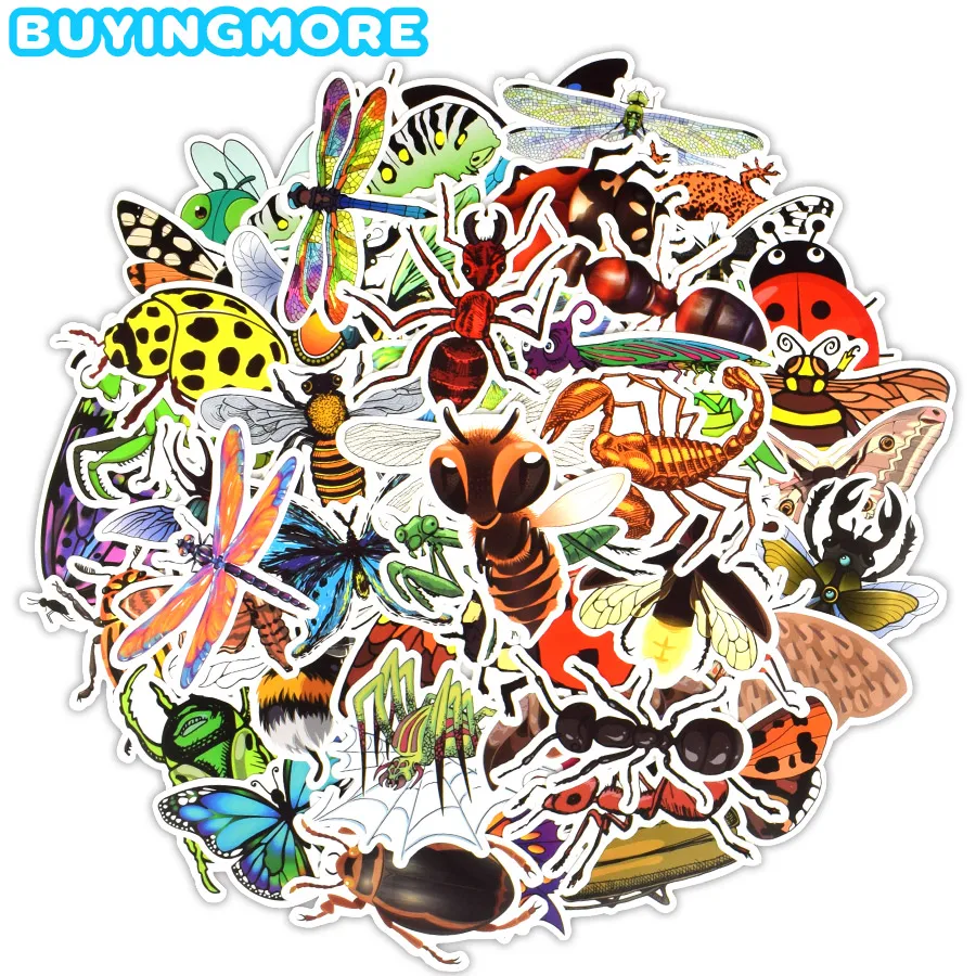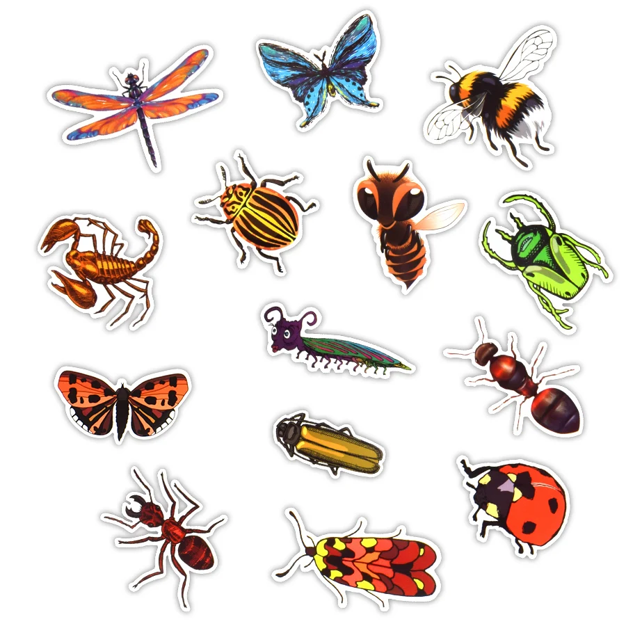 50 шт. наклейки для животных, насекомых, детские игрушки, милые, реалистичные, жук, Бабочка, мультфильм, водонепроницаемый стикер, сделай сам, скрапбук, образовательная наклейка
