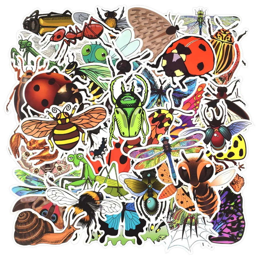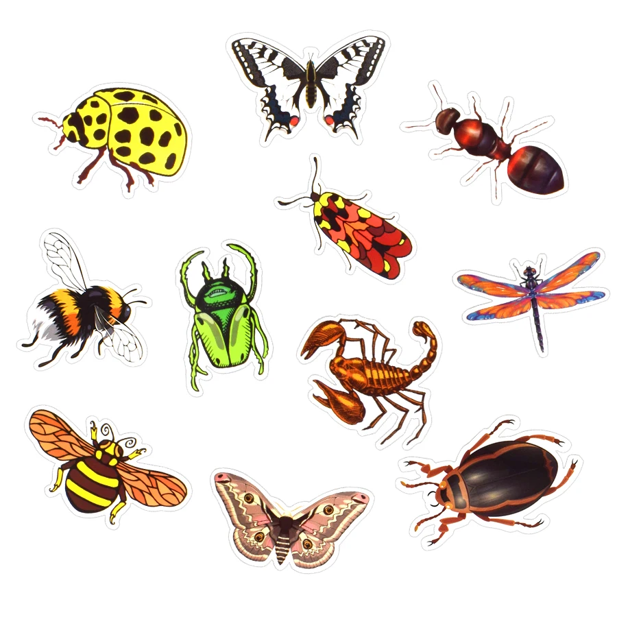 Посылка включает: 50 шт. стикеров в стиле насекомых животных. Не повторяется.
