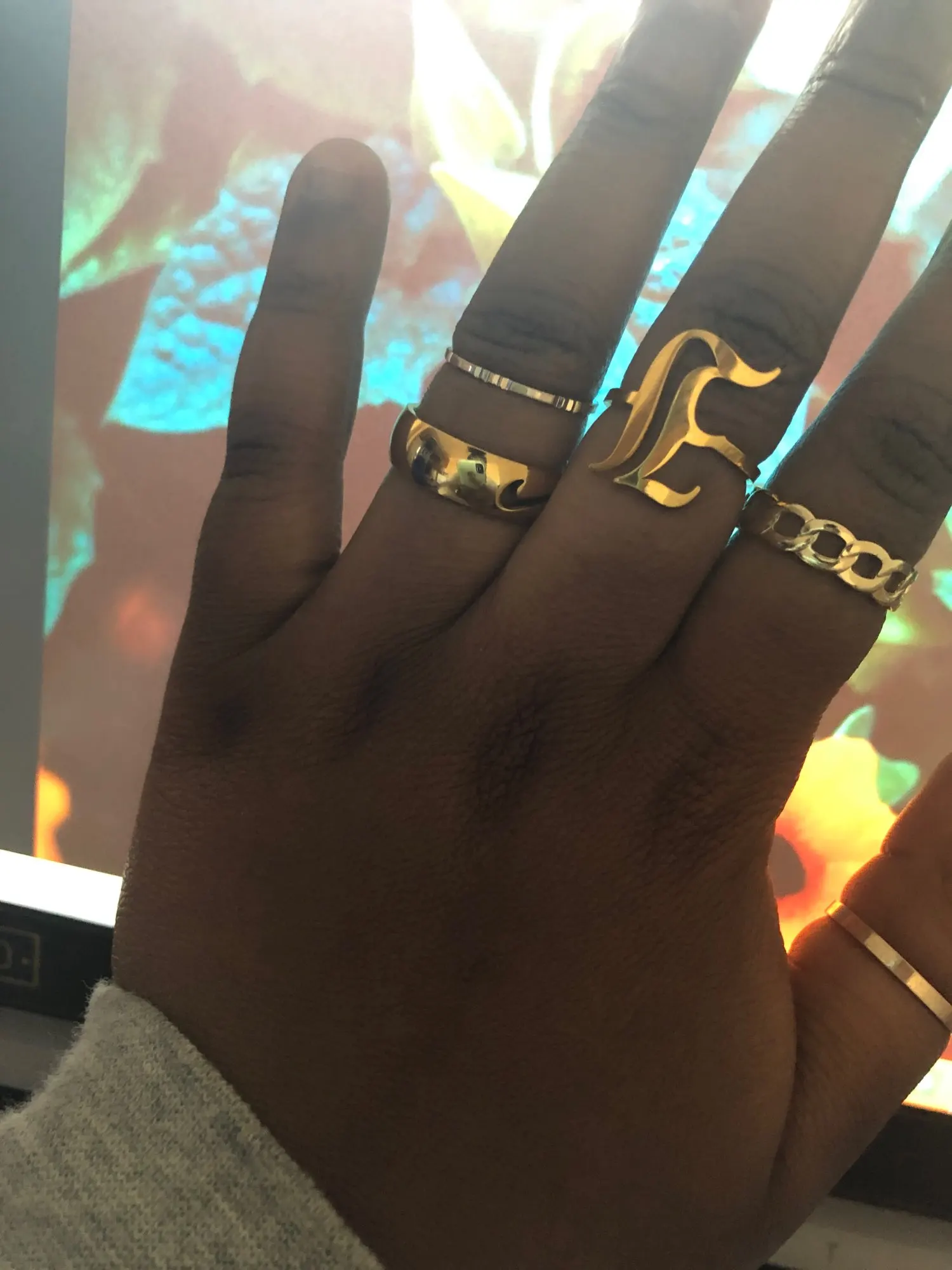 Кольцо очень точно выглядит так же, как на фото. Это не сверхмощное кольцо, очень легкое, но хорошее качество по цене. Мои пальцы тонкие, поэтому кольцо подходит только для большого пальца, но вы можете отрегулировать его.