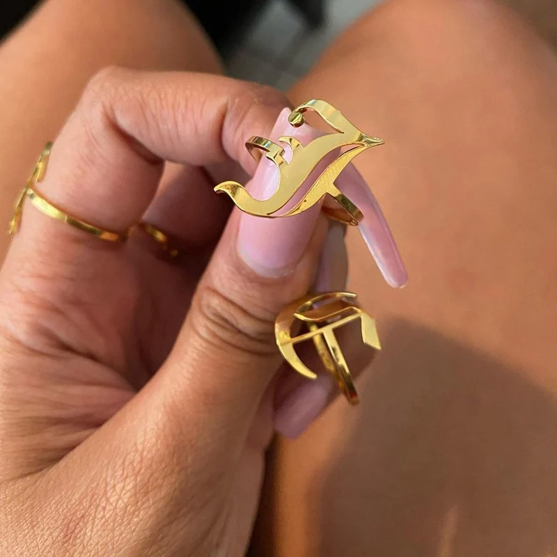 Кольцо женское, из нержавеющей стали, в готическом стиле, винтажное, открытое, кольца с буквами