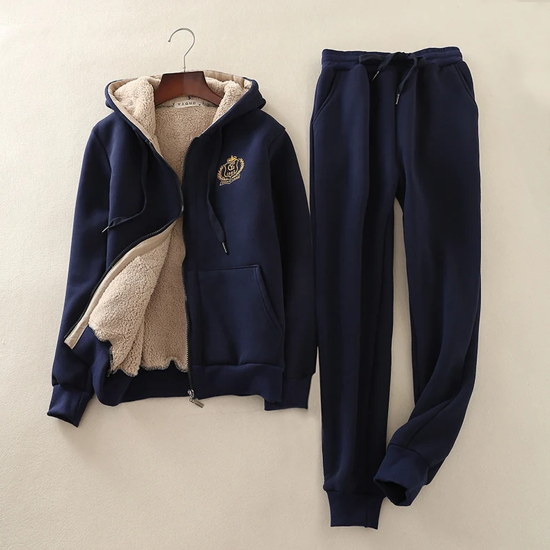 Женский хлопковый спортивный костюм с капюшоном, теплый повседневны...