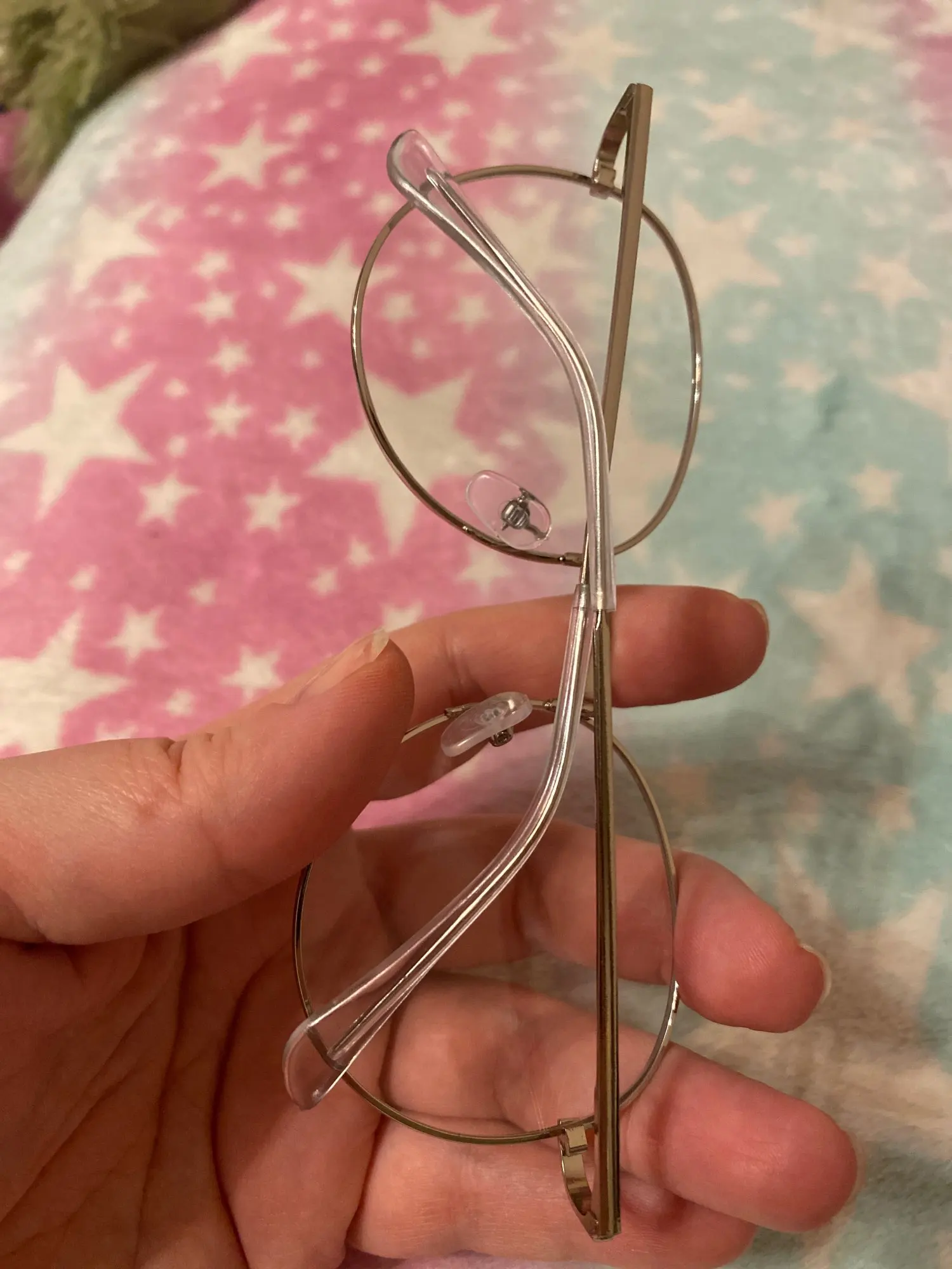 Очки шли 2 месяца. Я уже решила, что они потерялись, но пришло уведомление о том, что они на почте. Конечно, их пришлось руками выпрямить, потому что очень кривыми были: дужки носа и чтобы два очка были под одним наклоном и углом. Благо не сломала.