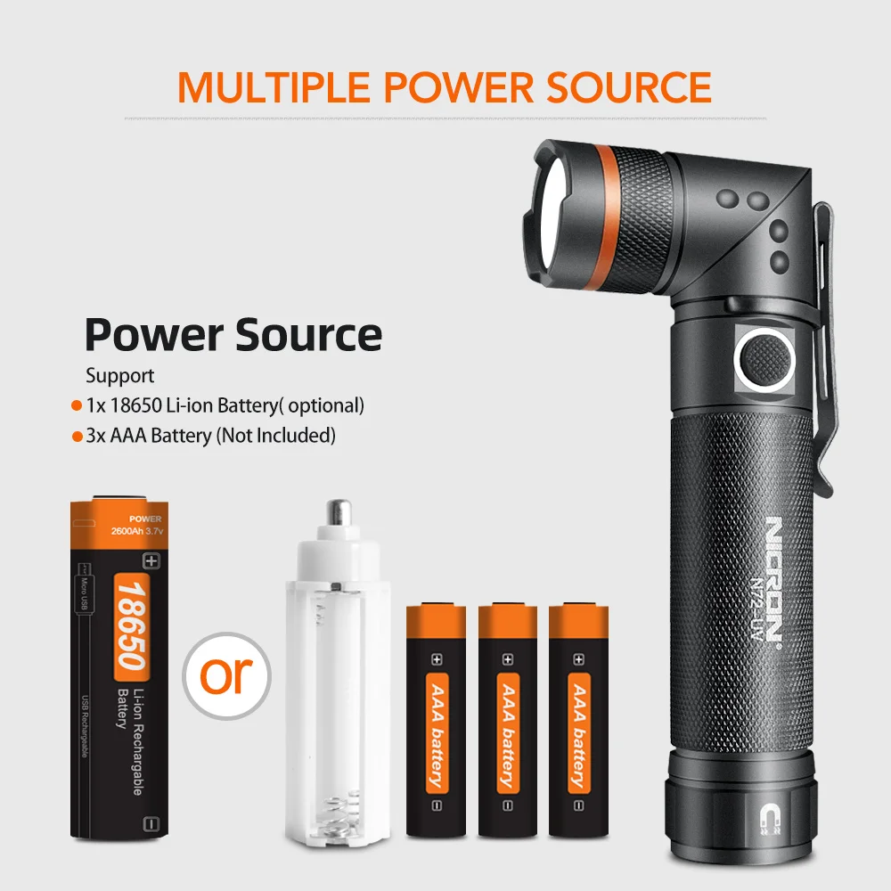 Светодиодный фонарь NICRON N72N72-UV, водонепроницаемый, 90 градусов, 18650 лм,AAA