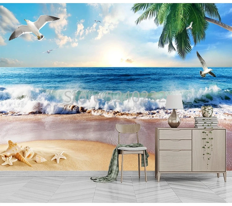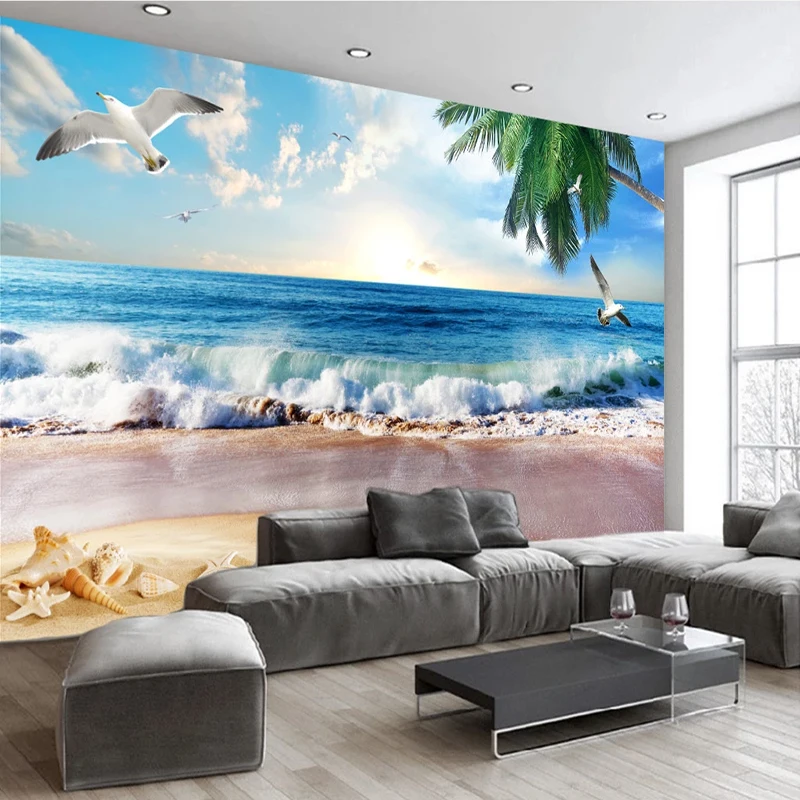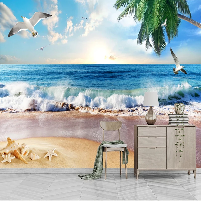 Пользовательские 3D обои 3D стерео морской пейзаж Чайка Коко пляж попугай фотообои гостиная спальня Водонепроницаемая настенная бумага постер