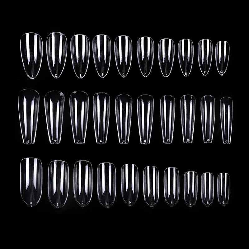 Острые ногти, накладной гроб, миндаль, круглая форма, полное покрытие, накладные ногти для акрилового порошка, наращивание, демонстрация практики