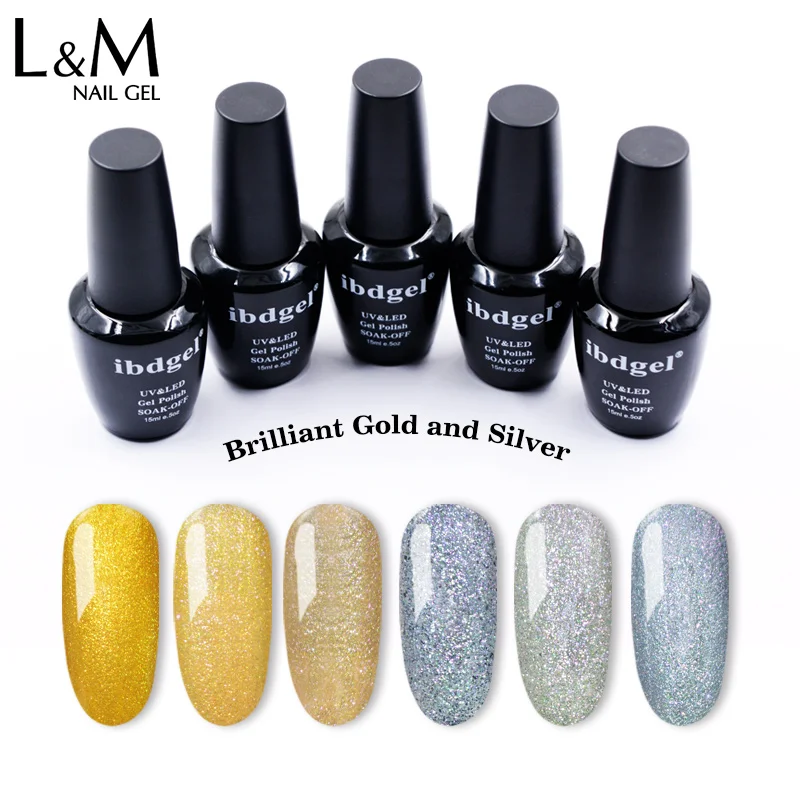 Ibdgel 6 шт. УФ гель лак для ногтей светодиодный отмачиваемый лак Звездный супер мерцающий золотой серебряный дизайн ногтей Красота Маникюр Декор Коллекция