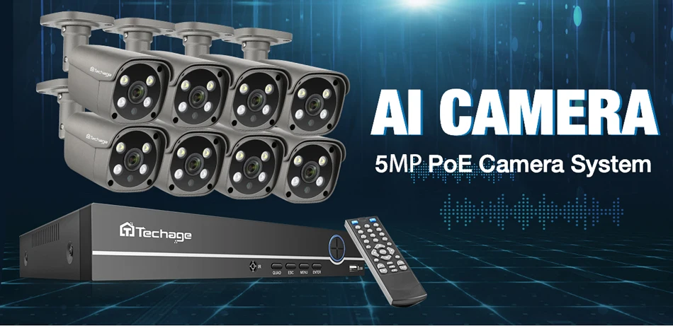 Система видеонаблюдения Techage, 8 каналов, 5 МП, IP-камера, POE, NVR, с двусторонним аудио, с ии