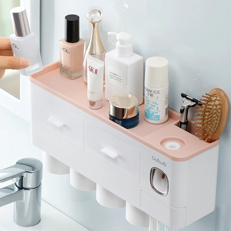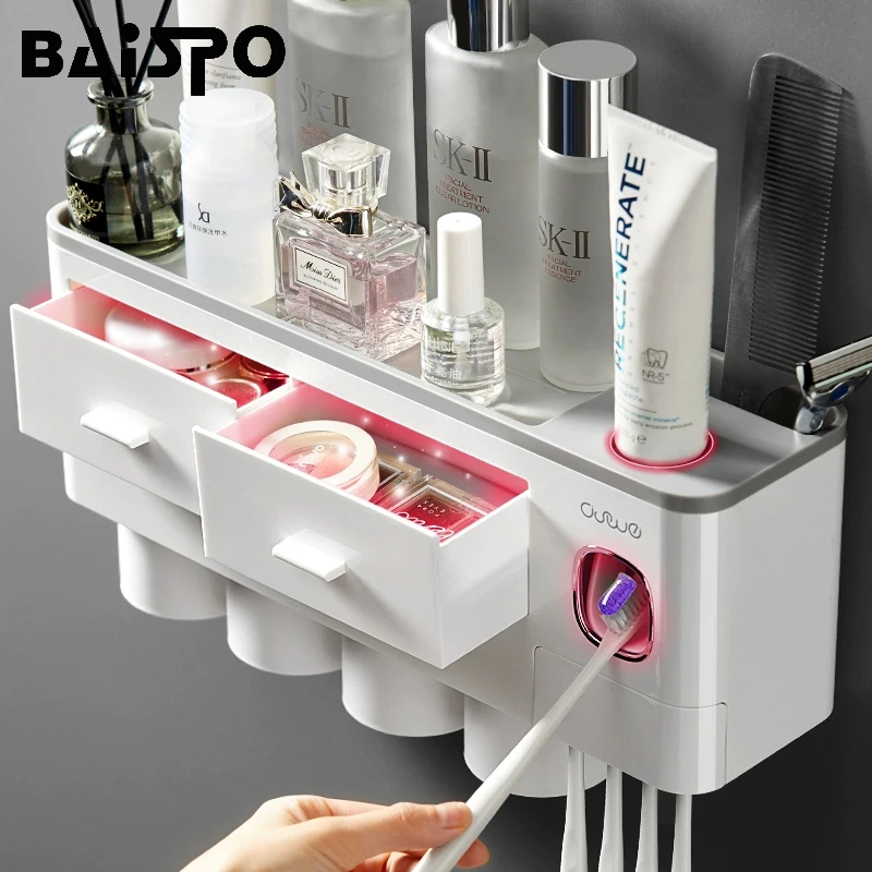 Держатель для зубных щеток BAISPO с магнитной адсорбцией, автоматический диспенсер для зубной пасты, стеллаж для хранения, аксессуары для ванной комнаты