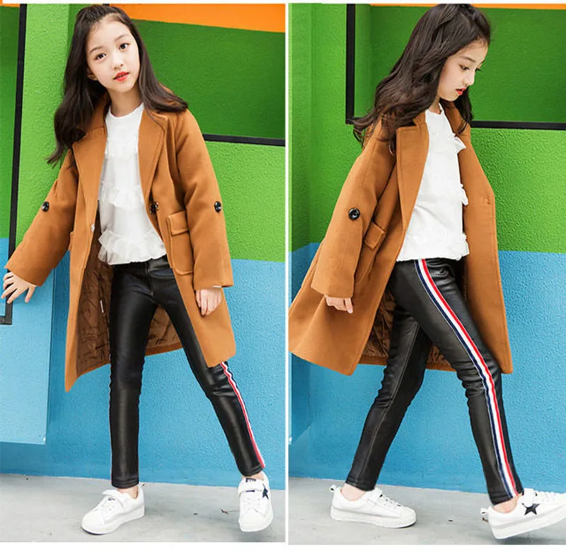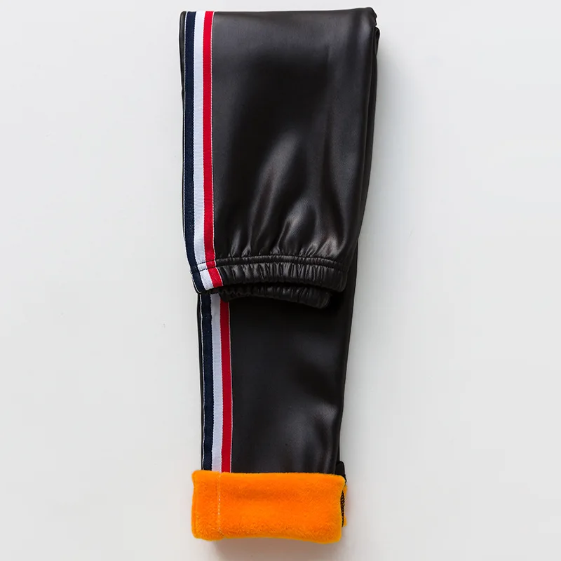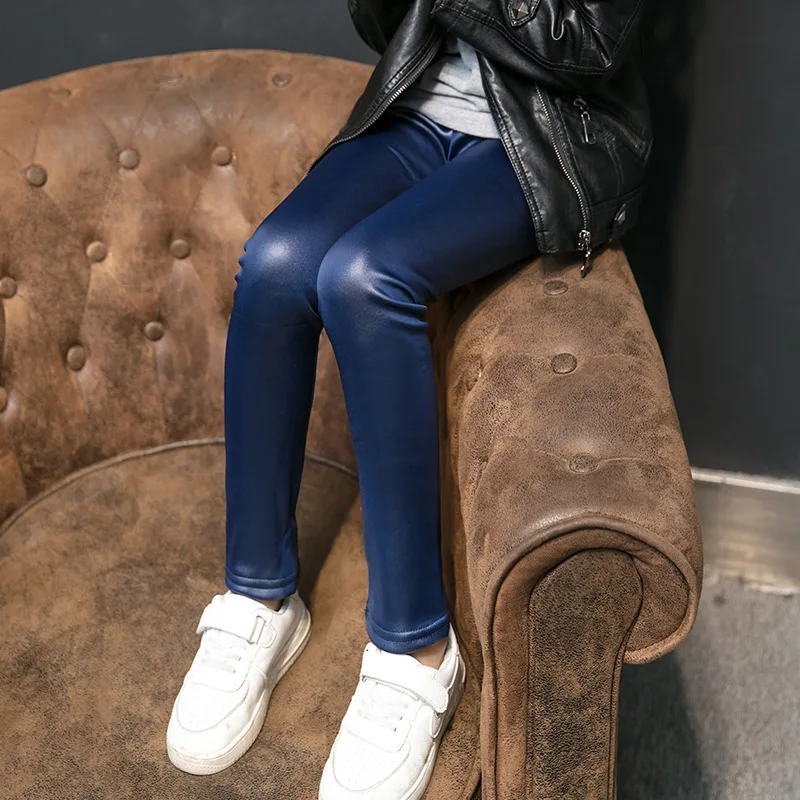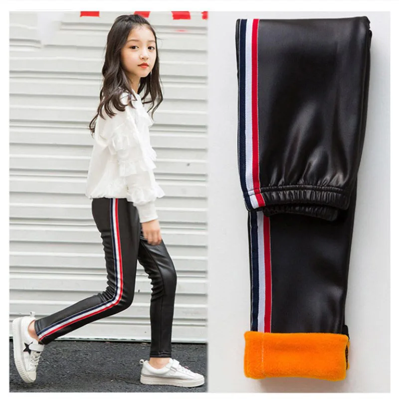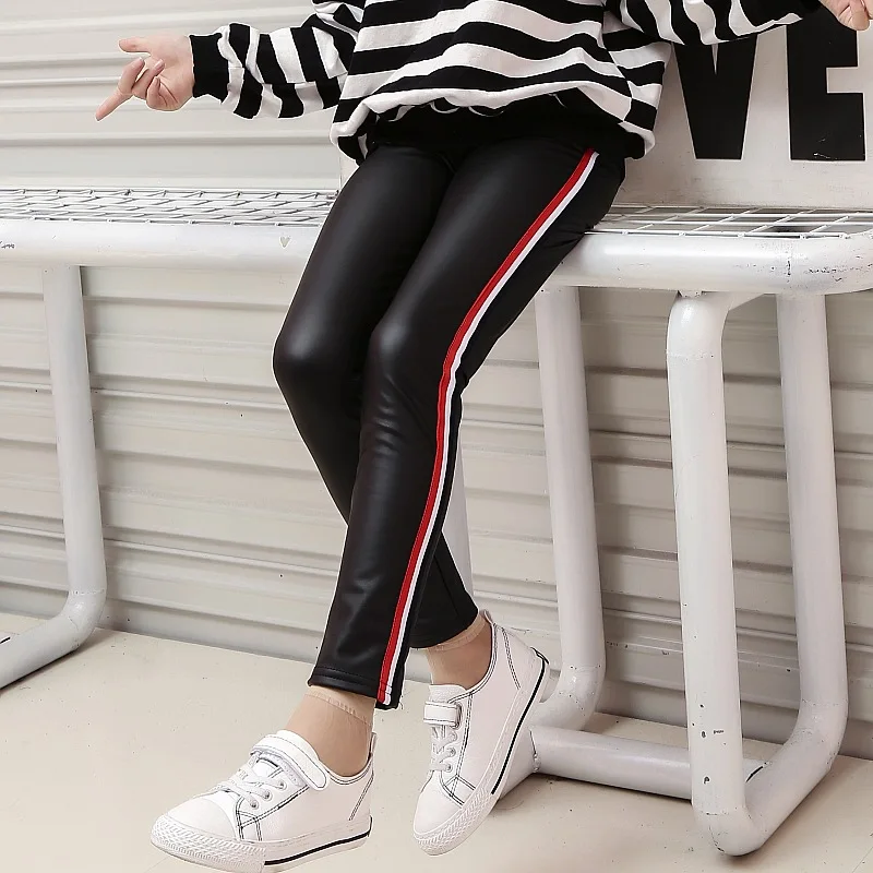 Детские леггинсы из искусственной кожи для девочек, теплые вельветовые брюки-карандаш золотого цвета с боковой полосой, От 2 до 12 лет одежда для детей, спортивные брюки