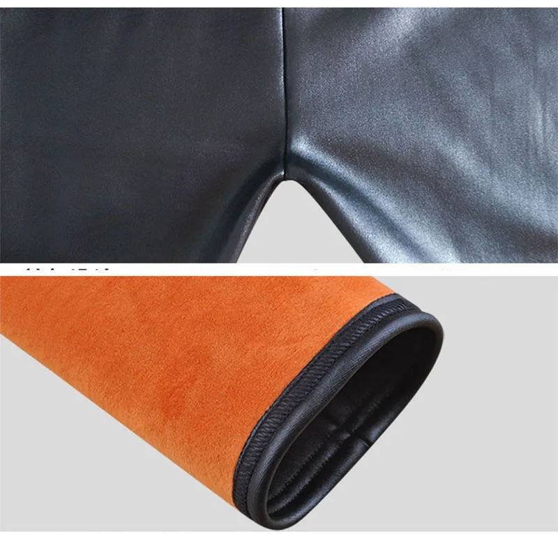 Не кожа, ткань под кожу. Внутри не мех а рыжий велюр. Узкие, на худых.