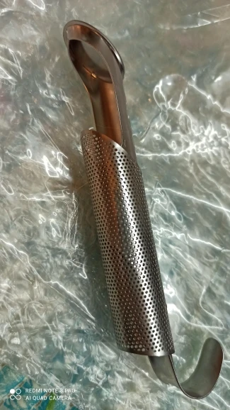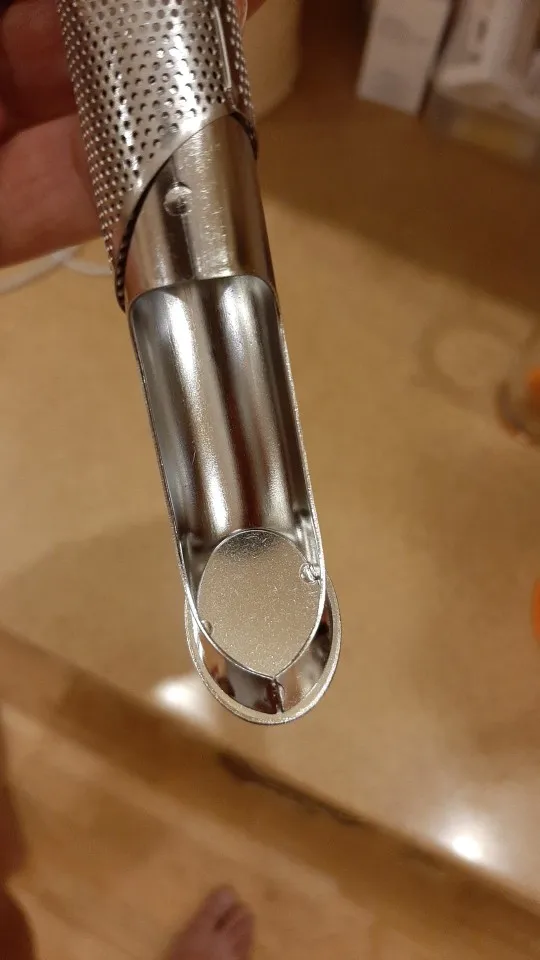 Заказала 2 держателя. Один пришел слегка неисправный, придется поджимать плоскогубцами, чтобы крышка держалась. но все дошло в отличном состоянии, нигде не помято. Держатель можно использовать не только для чая, но и для перца, лаврового листа и т.п. (опустить в кастрюлю при варке супа). Хорошая штучка. Советую.