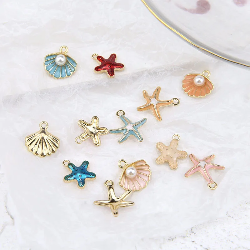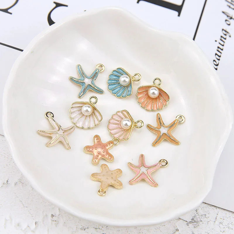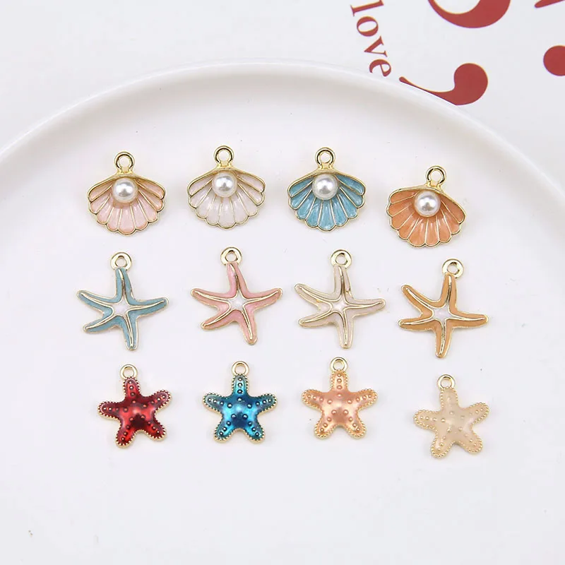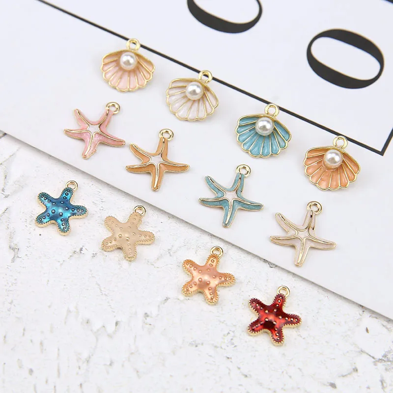 10 шт., 2020, новый дизайн, сплав, капля, масло, жемчуг, подвеска, морская Морская звезда, ракушка, массивные серьги для женщин, ювелирные изделия, аксессуары
