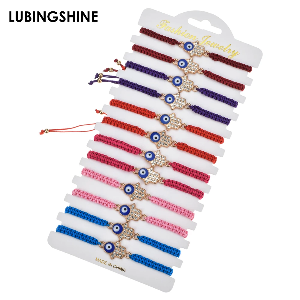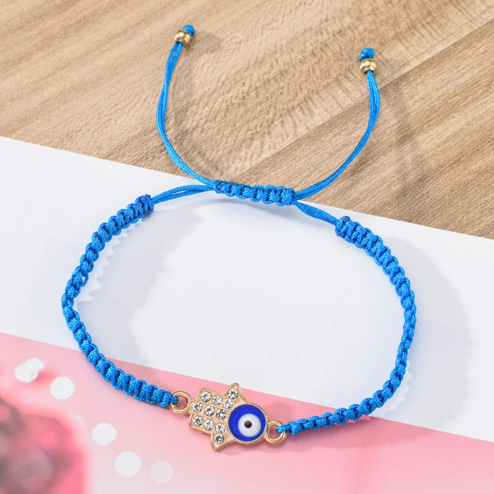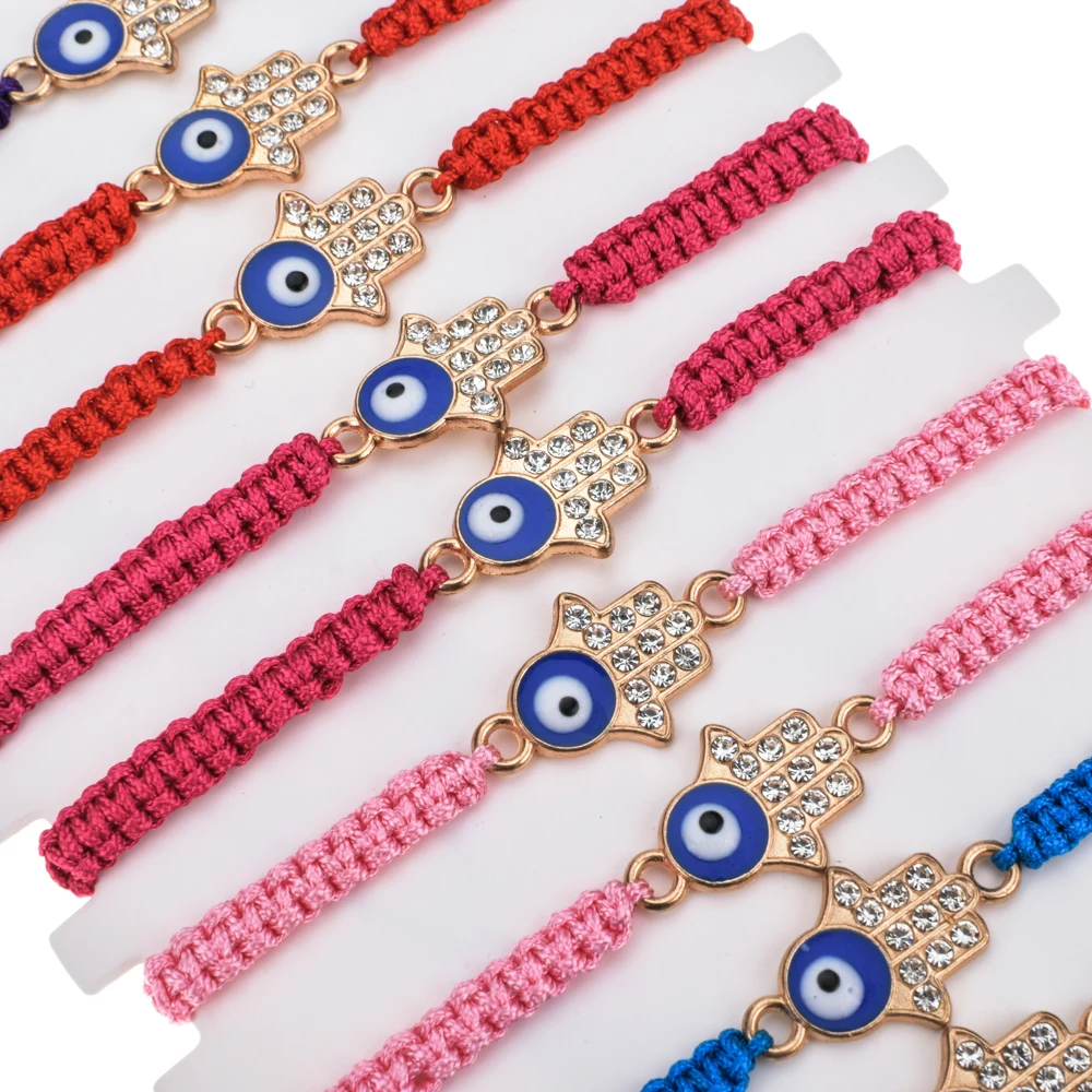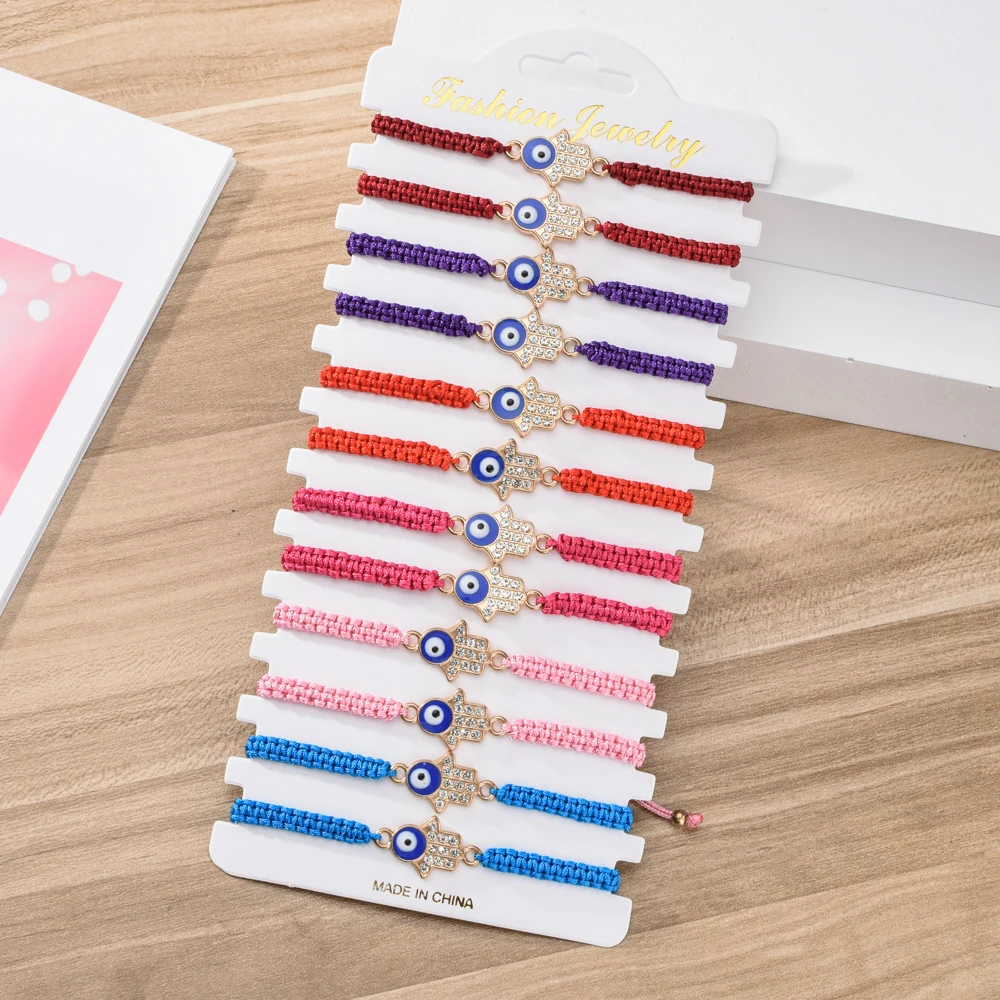 12 шт.компл. Плетеный Браслет-цепочка ручной работы с кристаллами Фатима рука синий сглаза Амулеты Браслет для женщин мужчин ювелирные изделия на манжетах