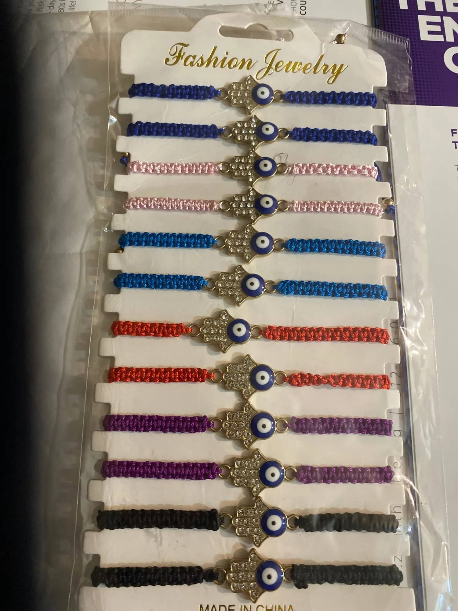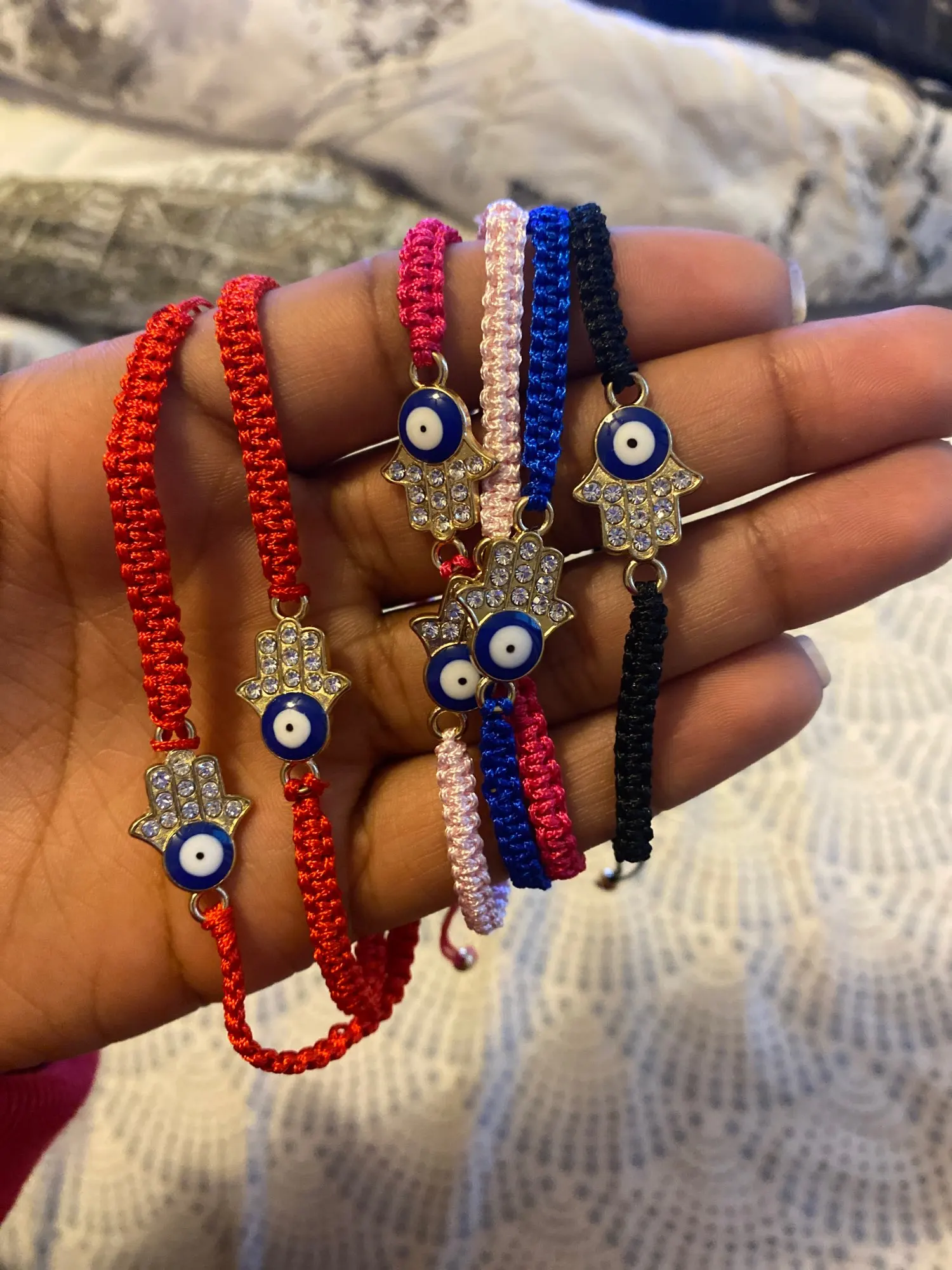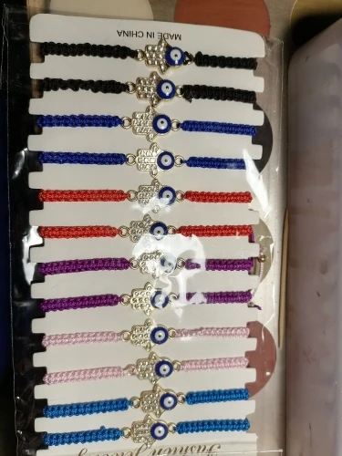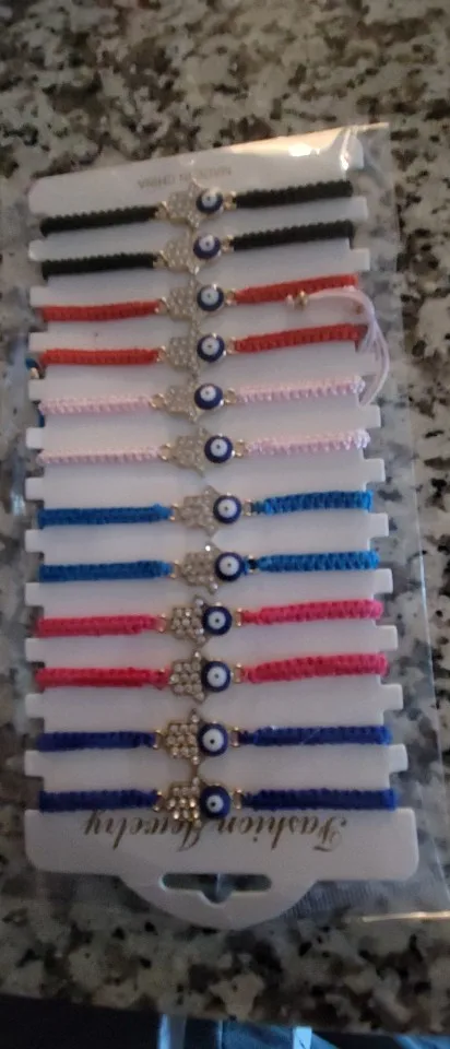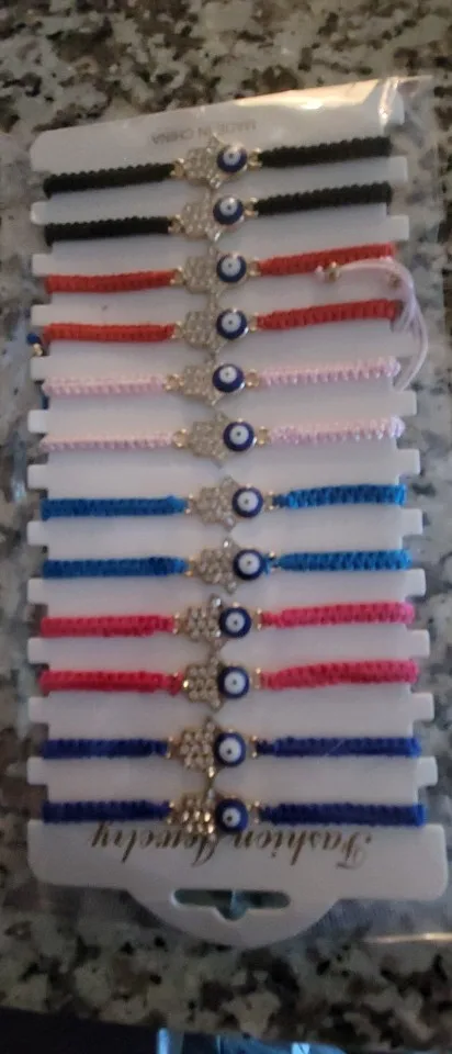 12 шт.компл. Плетеный Браслет-цепочка ручной работы с кристаллами Фатима рука синий сглаза Амулеты Браслет для женщин мужчин ювелирные изделия на манжетах