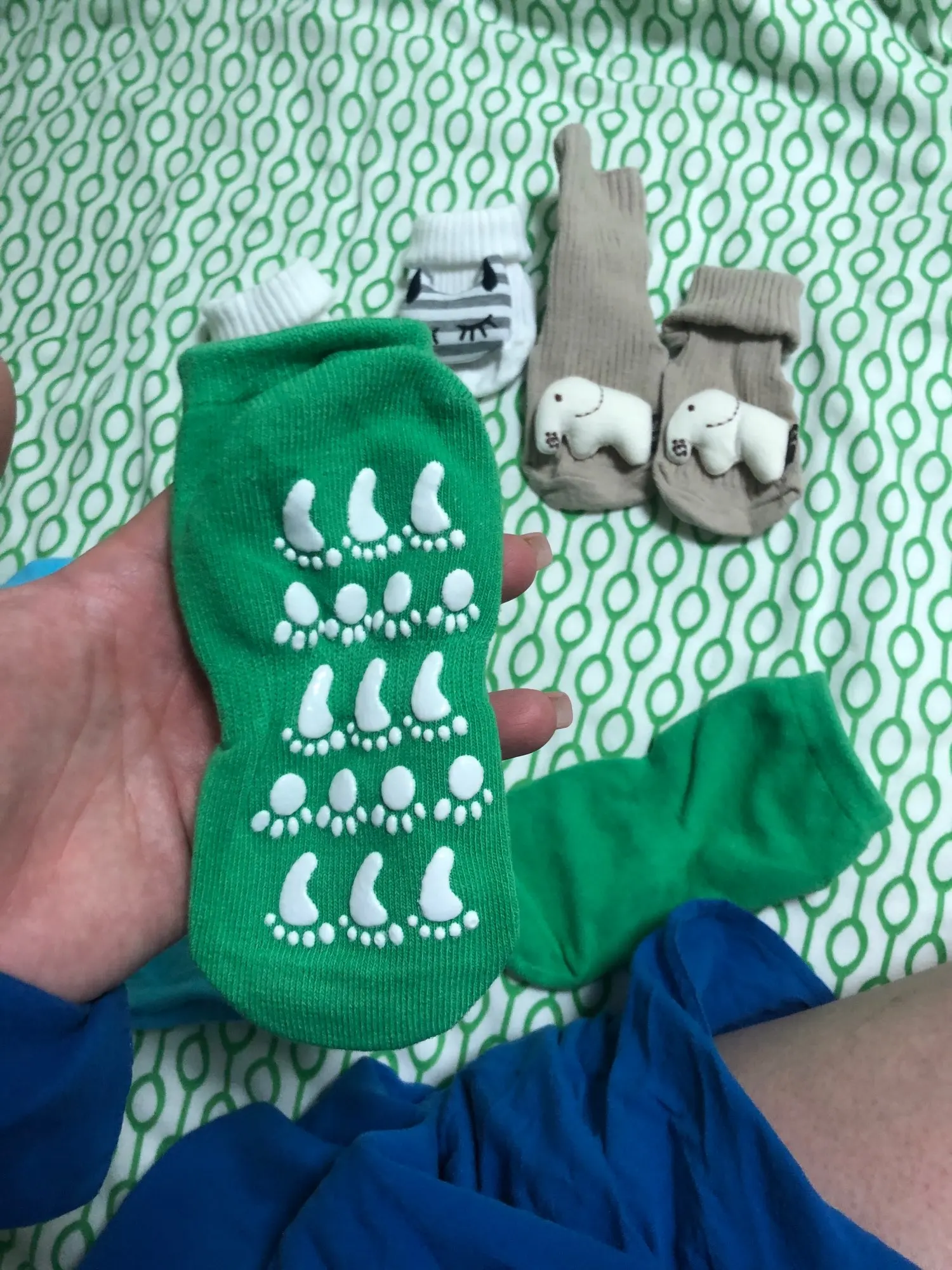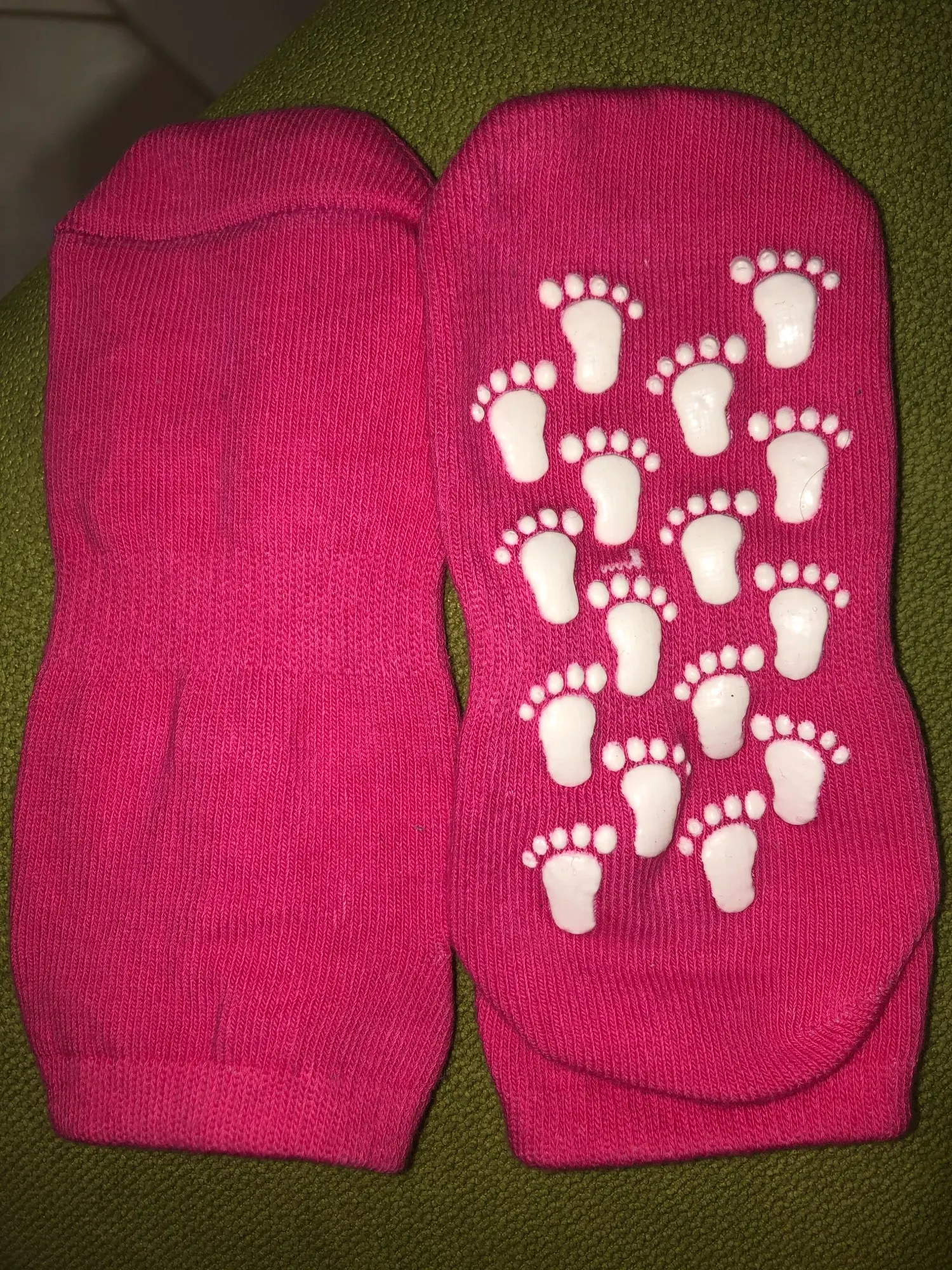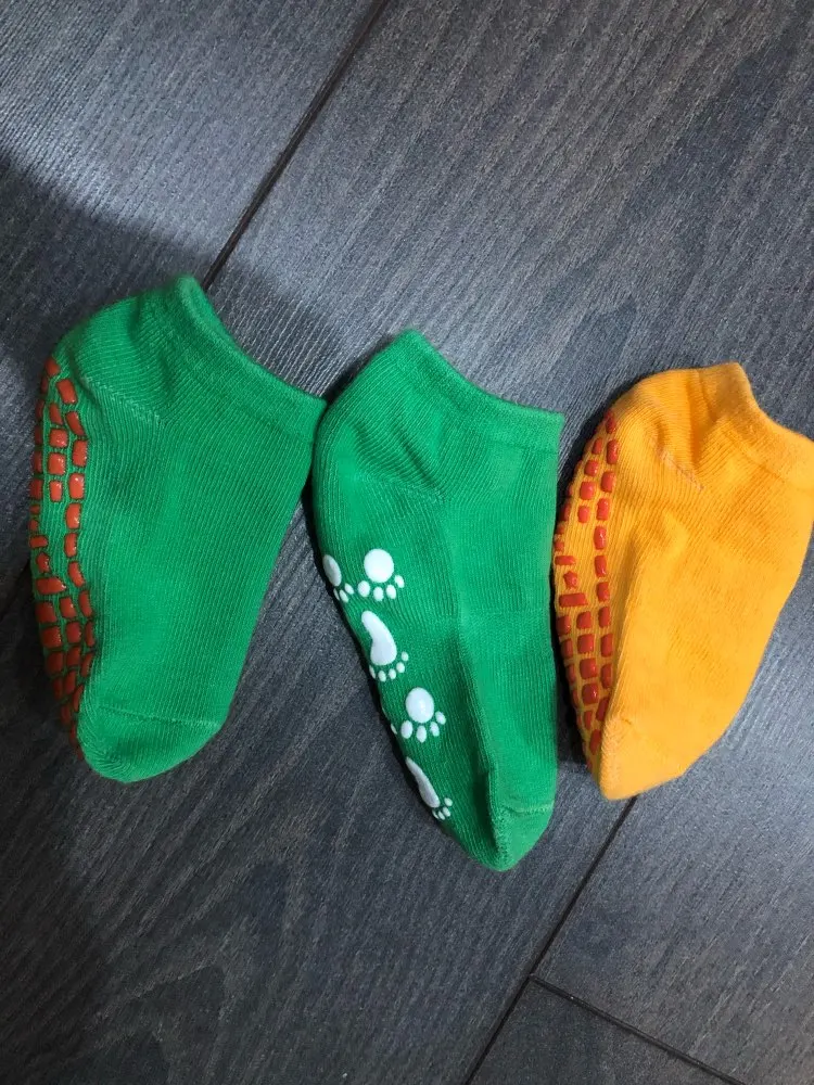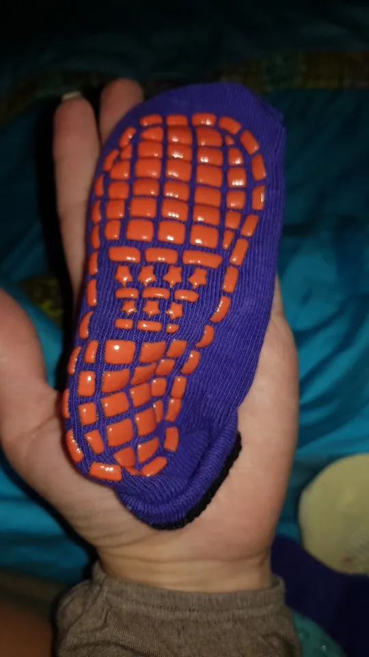 Спасибо , носочки класс! Протекторы крупные, носки не скользят.